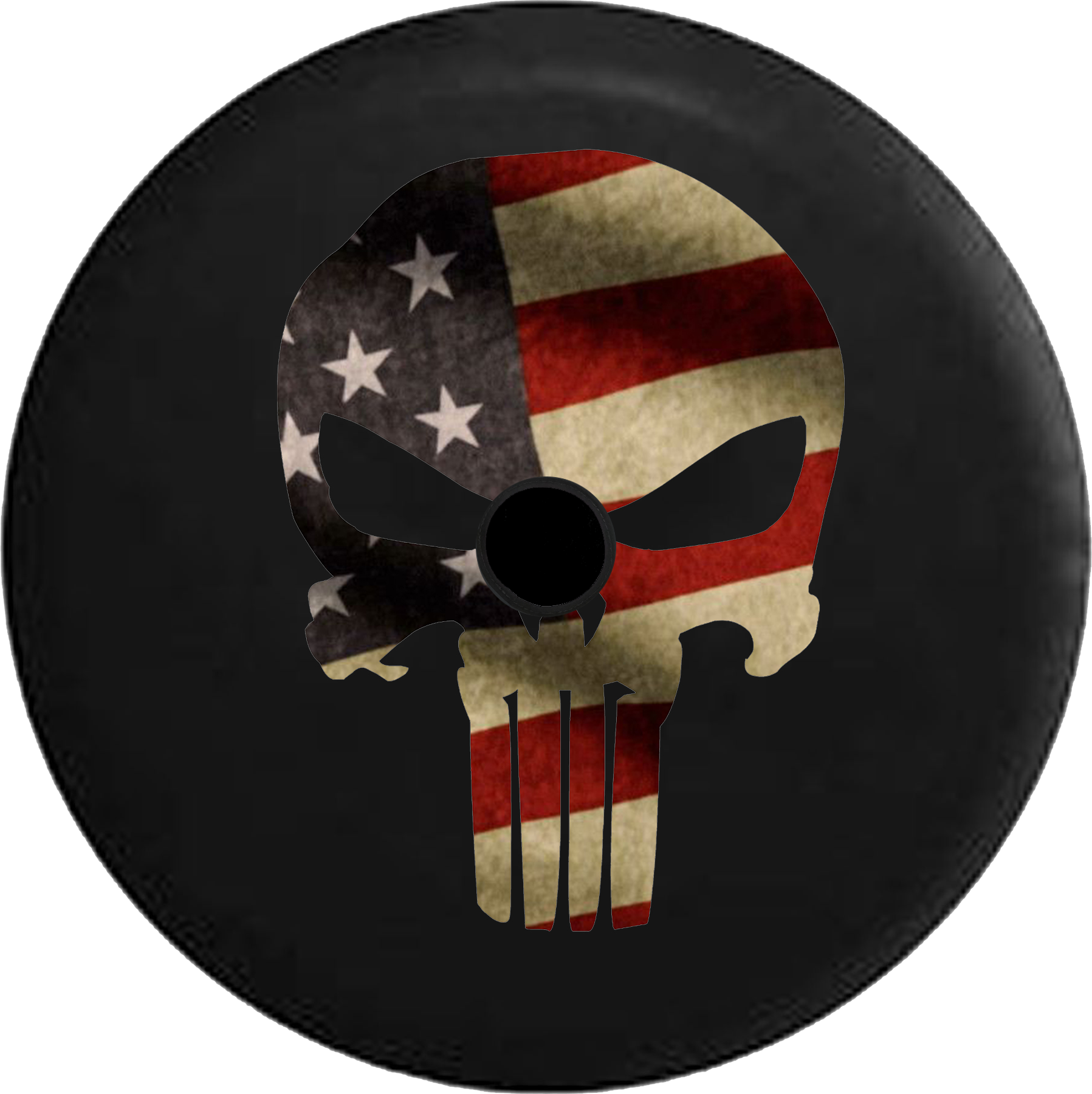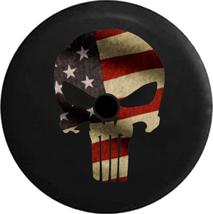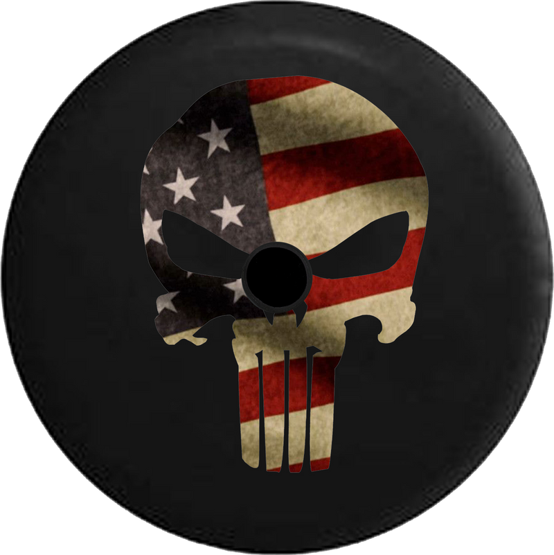 Jeep Wrangler JL Backup Camera American Patriot Skull Fire Flames RV Camper Spare Tire Cover-BLACK-