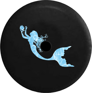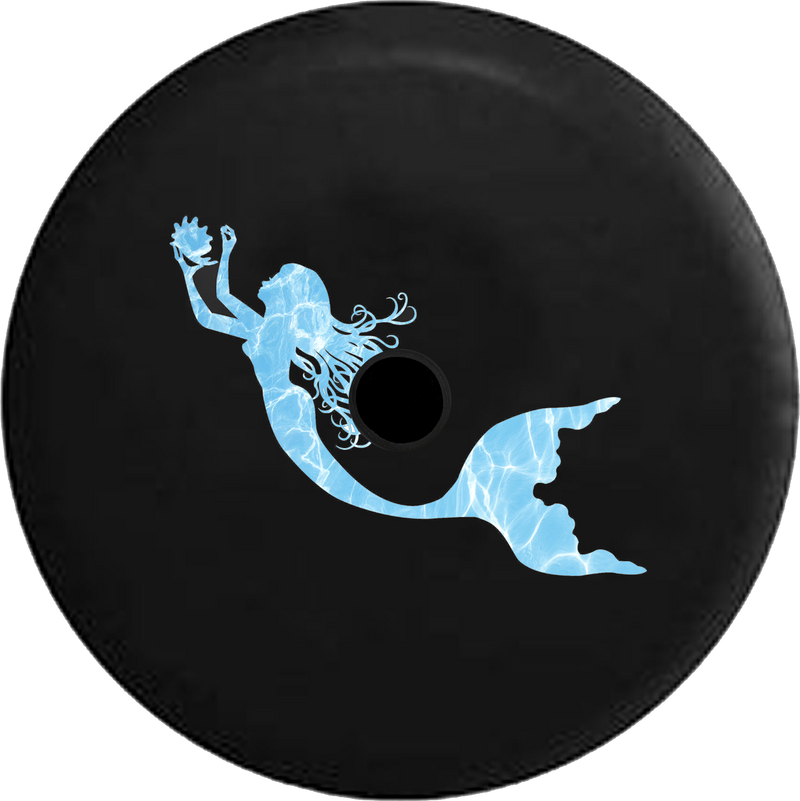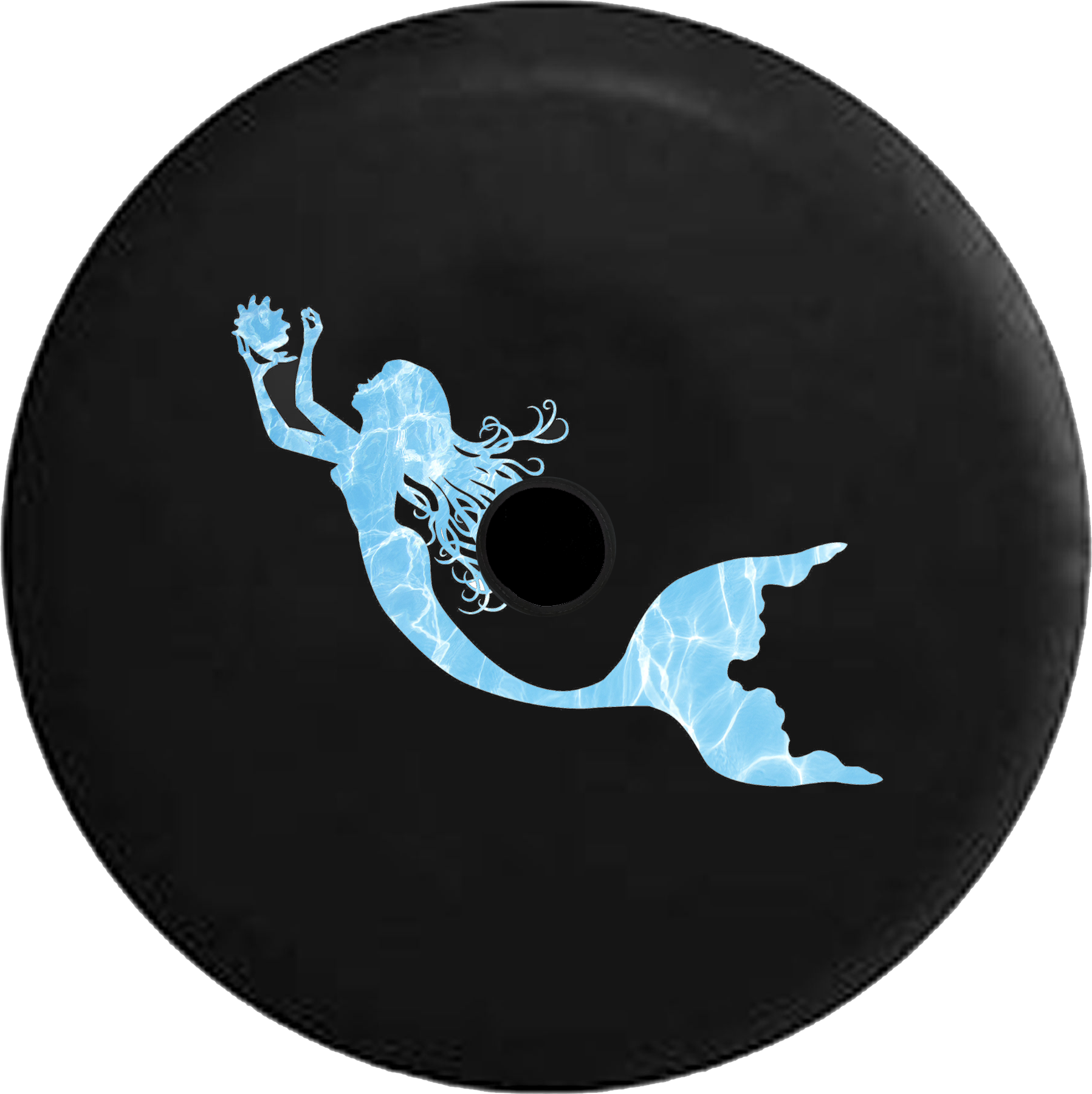 Jeep Wrangler JL Backup Camera Beautiful Mermaid Ocean Sea Life Water Spare Tire Cover-BLACK-