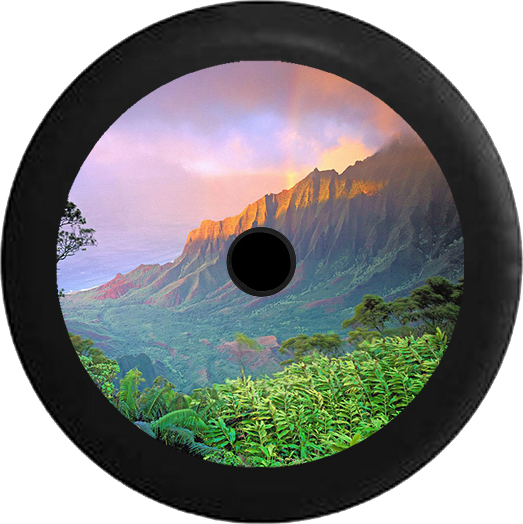 Jeep Wrangler JL Backup Camera Rainbow Colorful Peace Sign Gay RV Camper Spare Tire Cover-BLACK-