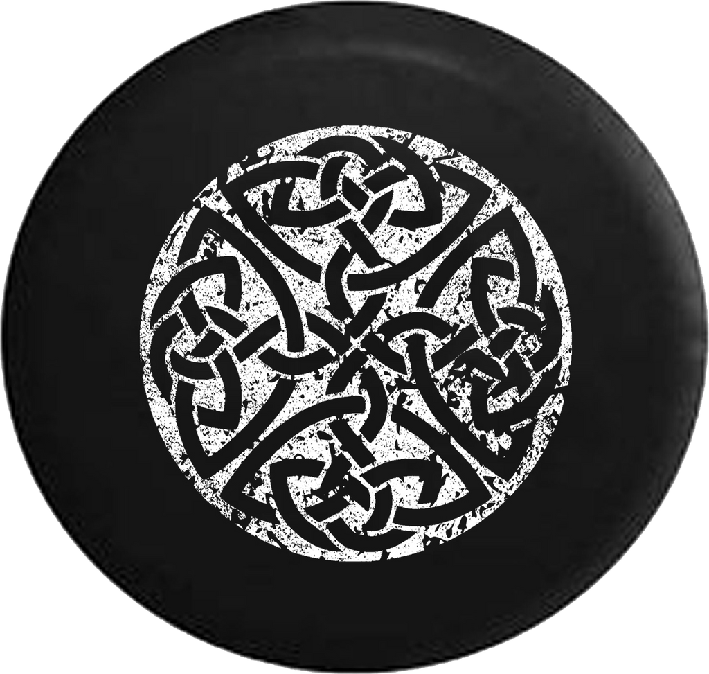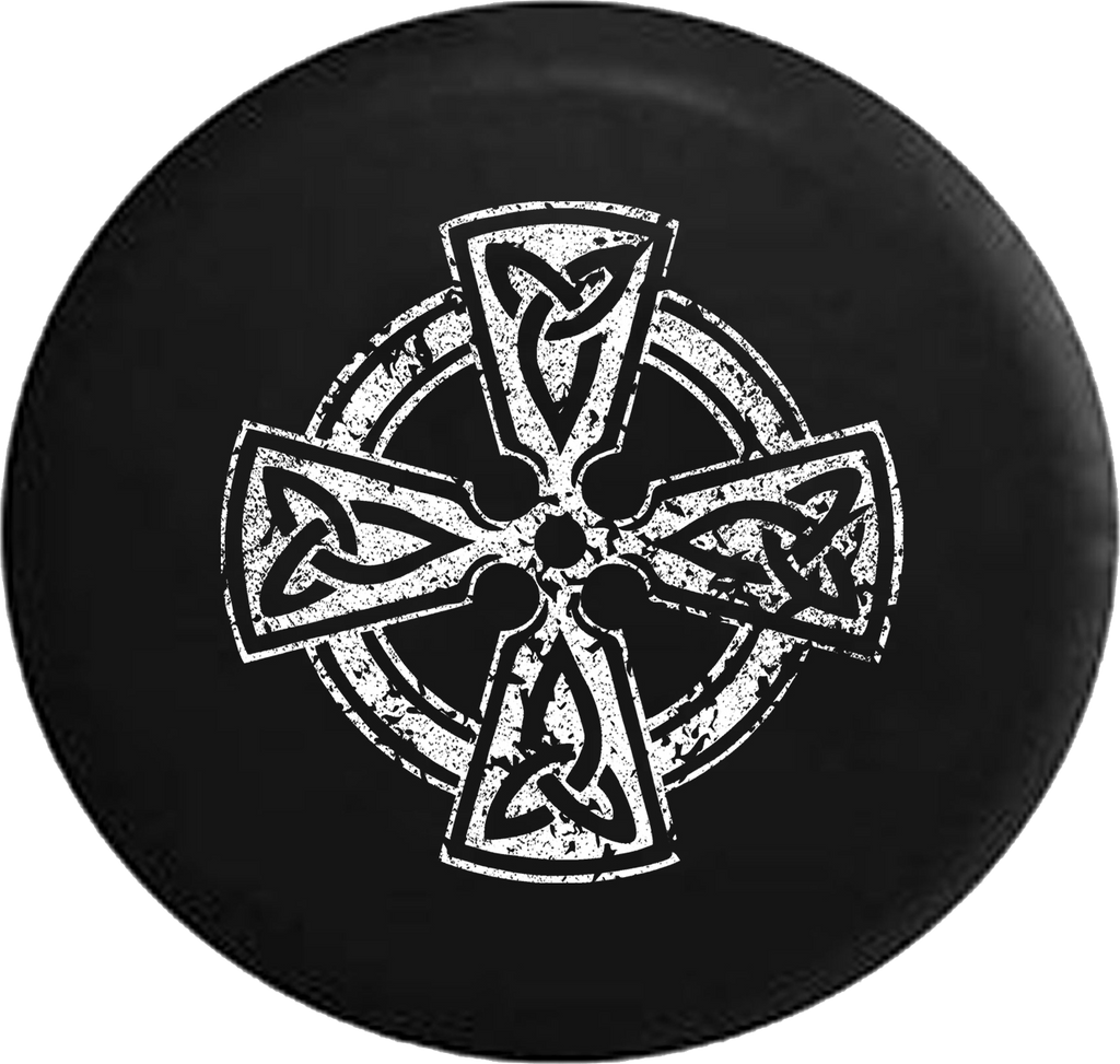 Distressed - Celtic Cross Knot Irish Shield Warrior Jeep Camper Spare Tire Cover S277 Custom Size