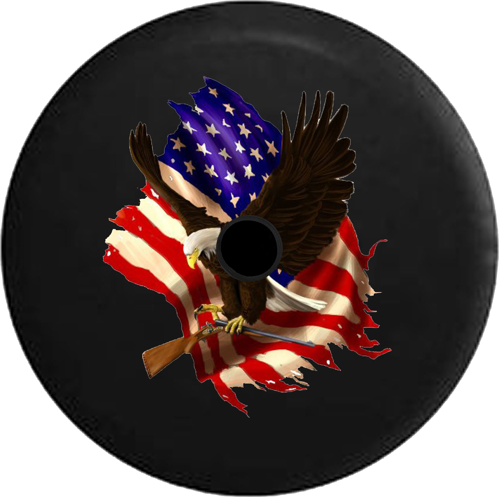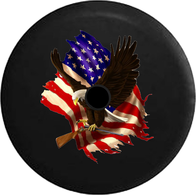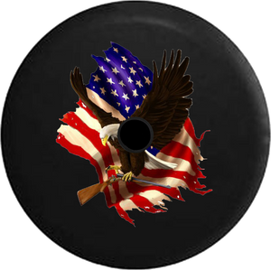 Jeep Wrangler JL Backup Camera American Bald Eagle Carrying Shotgun with American Flag Jeep Spare Tire Cover - P108