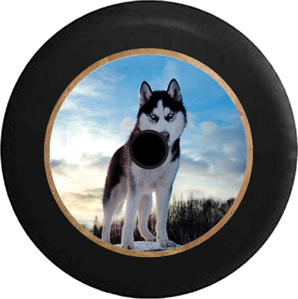 Jeep Wrangler JL Backup Camera Husky Blue Eyed Dog Jeep Camper Spare Tire Cover BLACK- - R383