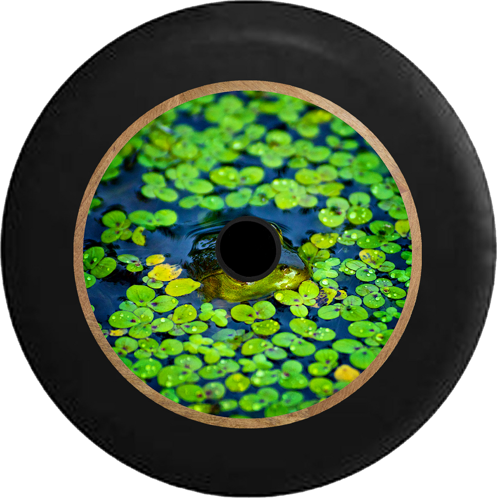 Jeep Wrangler JL Backup Camera Green Frog in Lily Pads Cove of Pond Jeep Camper Spare Tire Cover BLACK- - R356