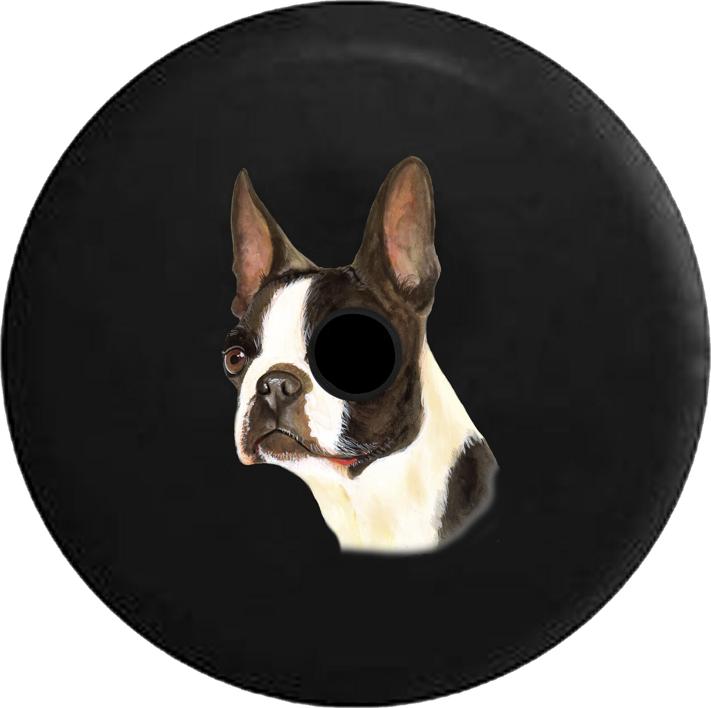 Jeep Wrangler JL Backup Camera Boston Terrier Dog Lover Adopt Rescue RV Camper Spare Tire Cover-BLACK-