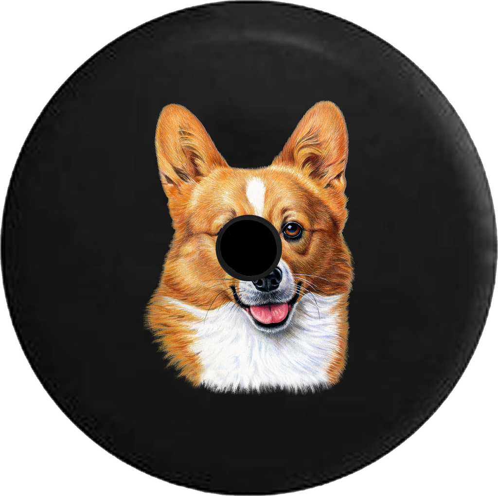 Jeep Wrangler JL Backup Camera Corgi Dog Smiling RV Camper Spare Tire Cover-BLACK-