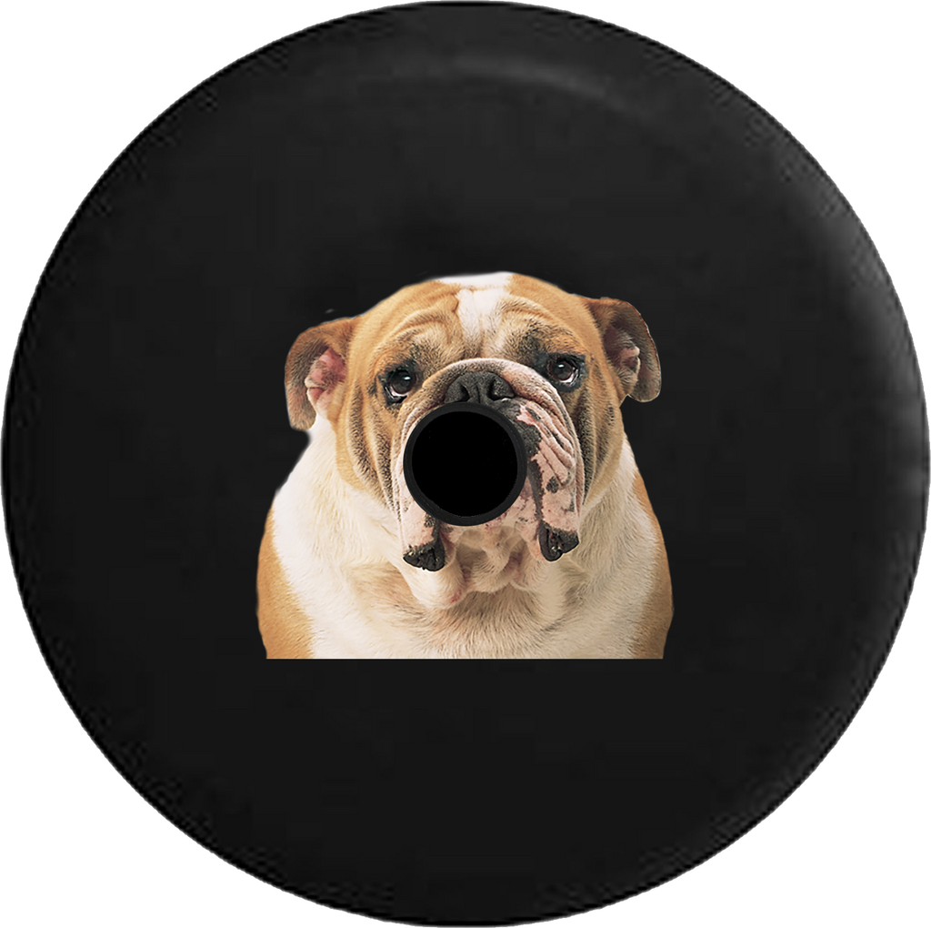 Jeep Wrangler JL Backup Camera English Bulldog Bull Dog RV Camper Spare Tire Cover-BLACK-
