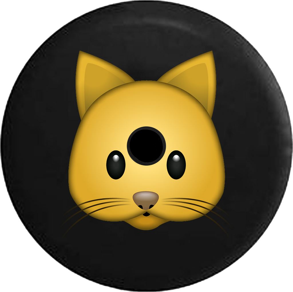 Jeep Wrangler JL Backup Camera Kitty Cat Emoji Face RV Camper Spare Tire Cover-BLACK-