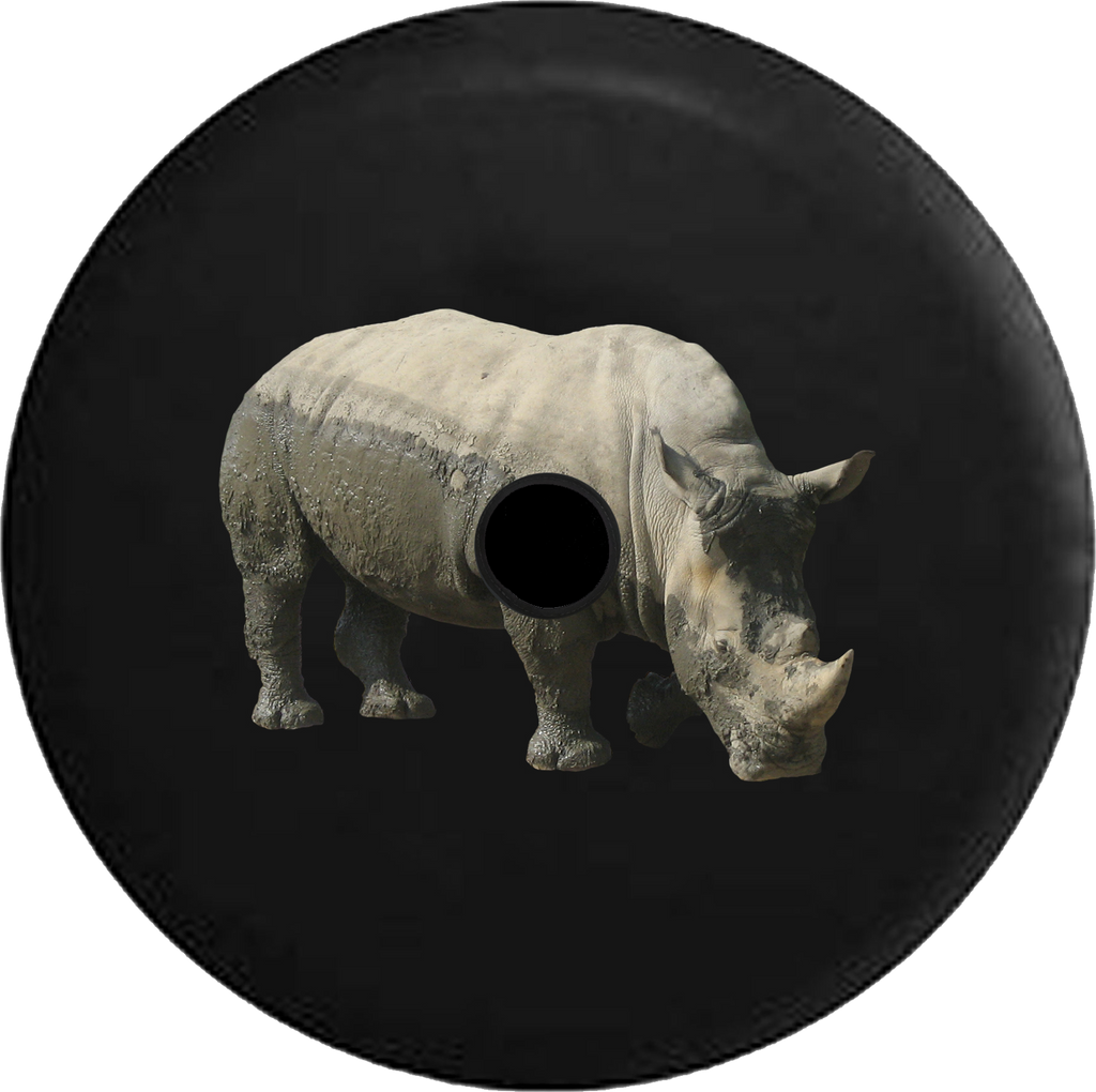 Jeep Wrangler JL Backup Camera Charging African Grey and Black Rhino Jeep Spare Tire Cover BLACK- - R130