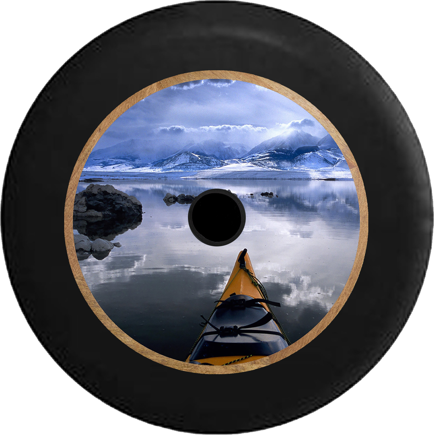 Jeep Wrangler JL Backup Camera Alaska Sea Kayak in the Ocean Peaceful Serenity Jeep Camper Spare Tire Cover BLACK- - R298