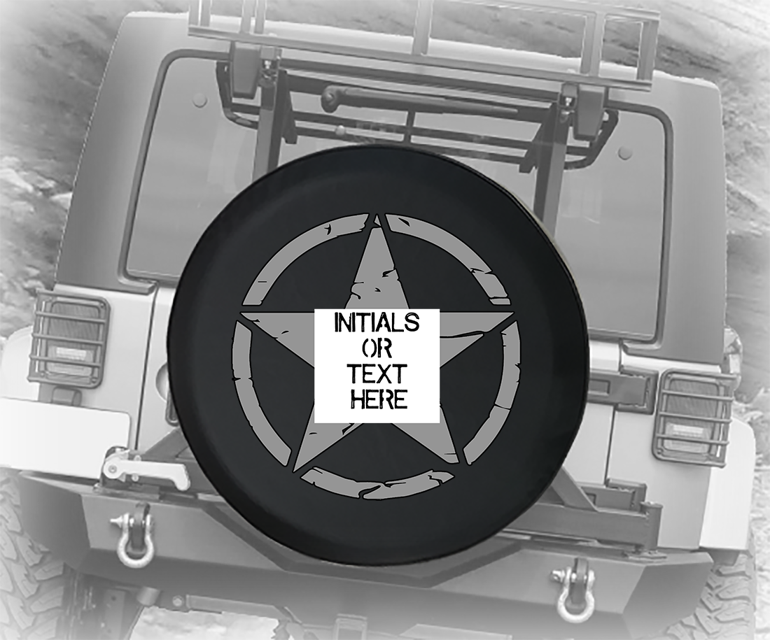 Steel Grey Vintage Military Distressed Star - Personalized Spare Tire Cover