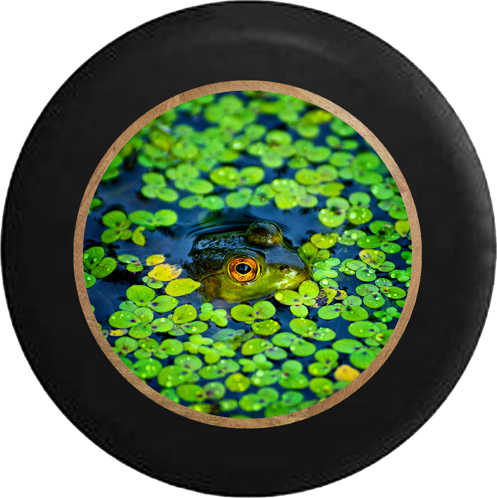 Green Frog in Lily Pads Cove of Pond Jeep Camper Spare Tire Cover BLACK- - R356