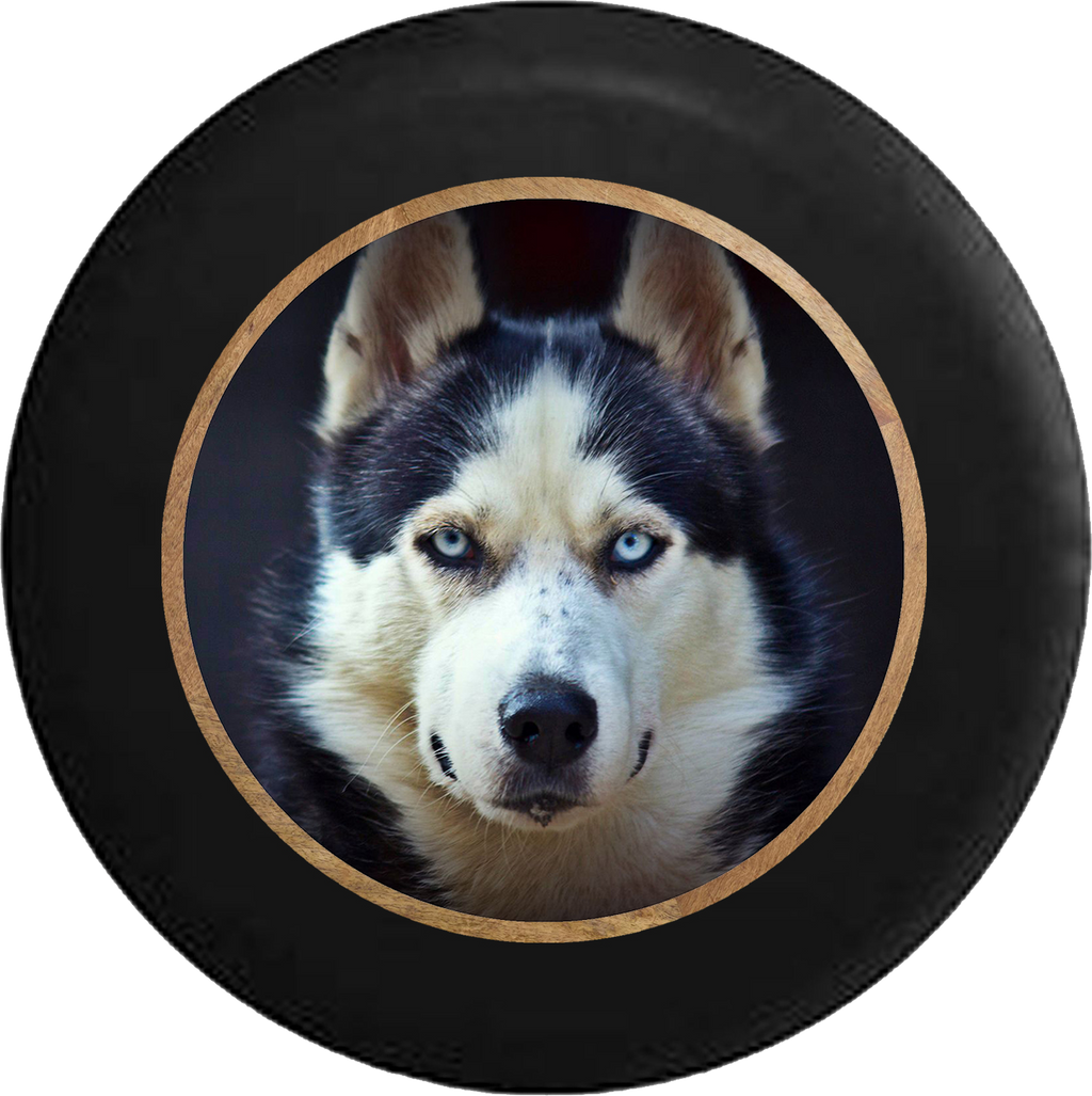 Husky Blue Eyed Dog Jeep Camper Spare Tire Cover BLACK- - R383