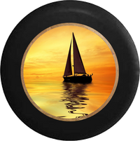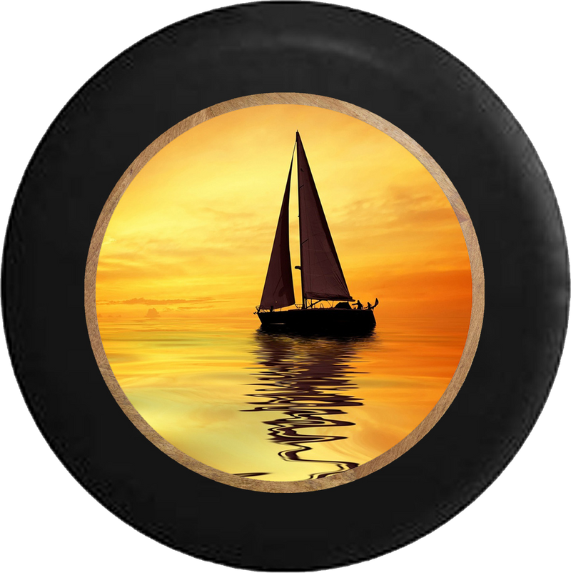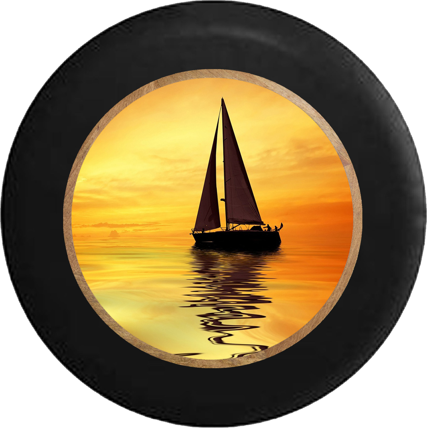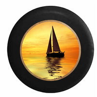 Sailboat at Sunset Ocean Salt Water Breeze RV Camper Spare Tire Cover-BLACK-