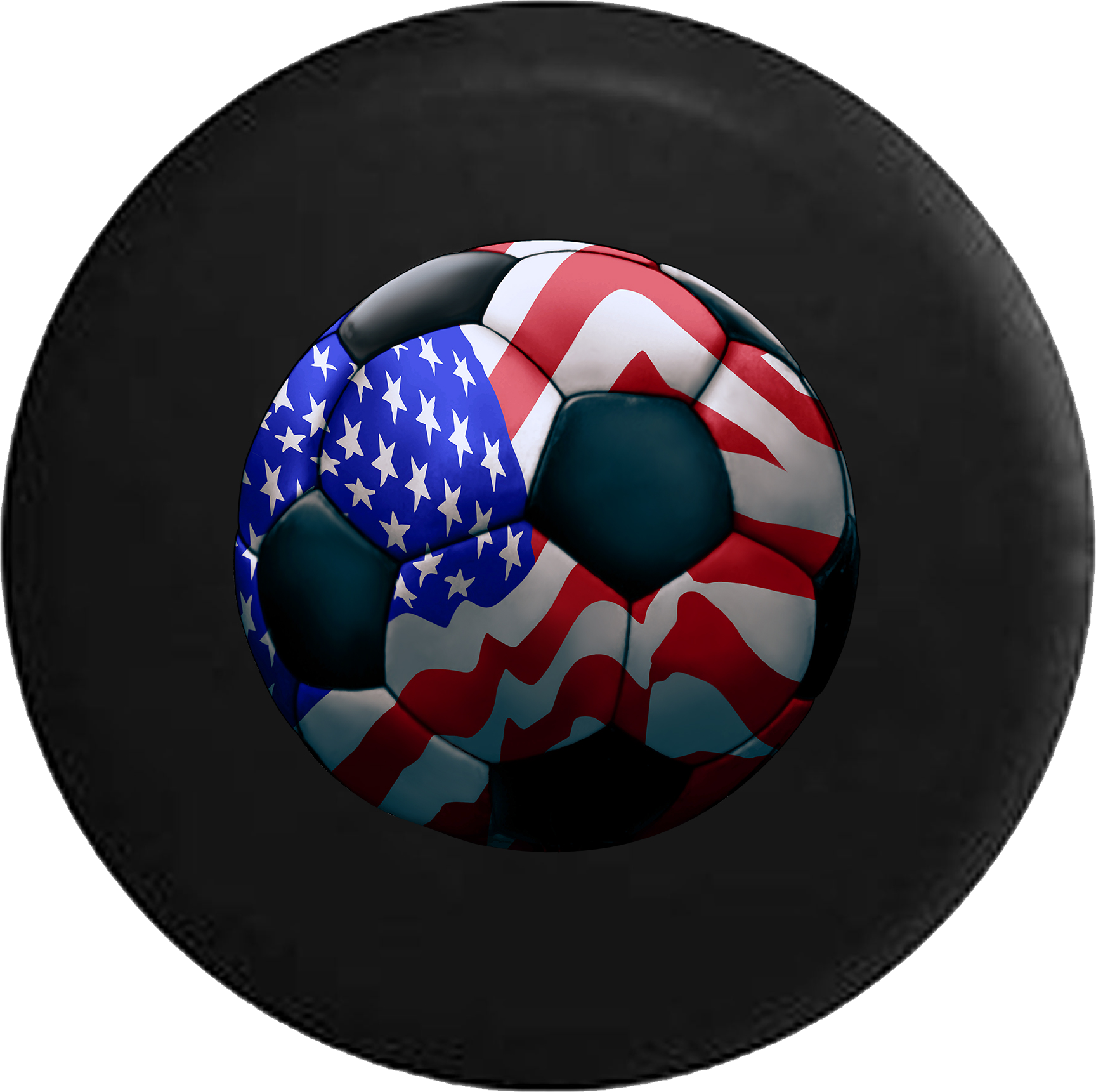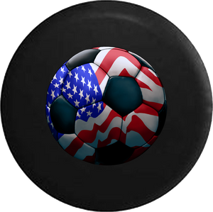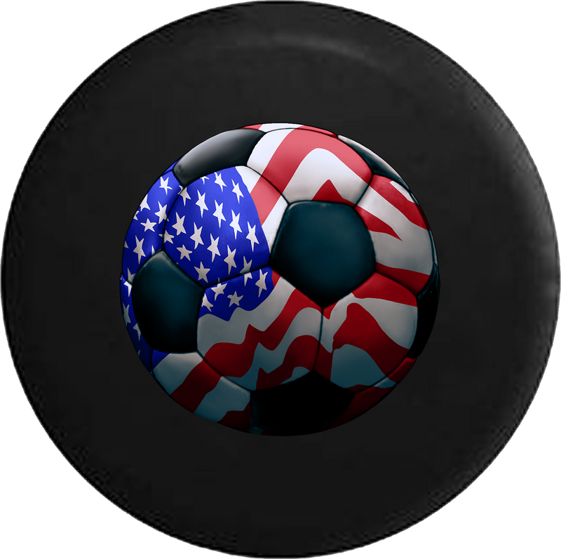 American Flag Soccer Ball Futbol RV Camper Spare Tire Cover-BLACK- -V396