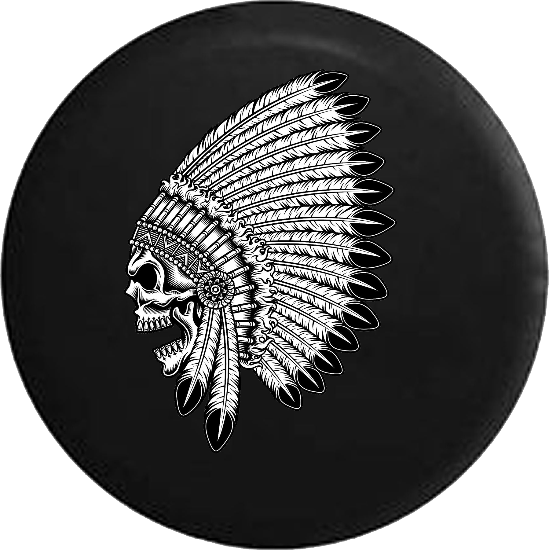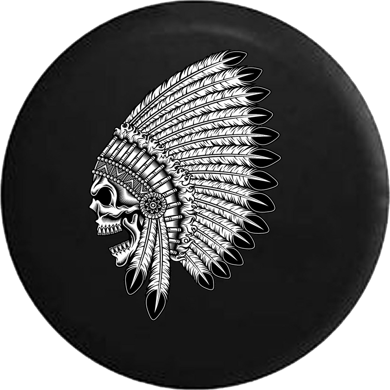 American Indian Chief Skull Feathers Jeep Camper Spare Tire Cover Custom Size - V553