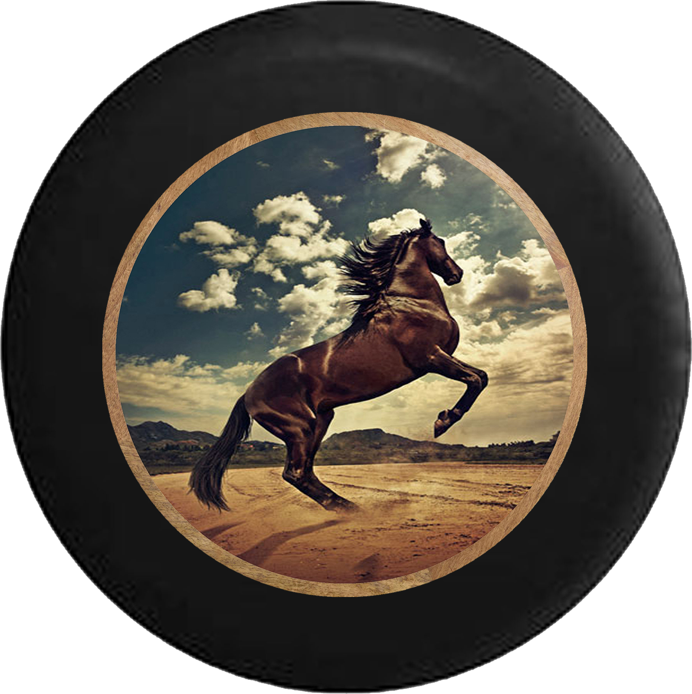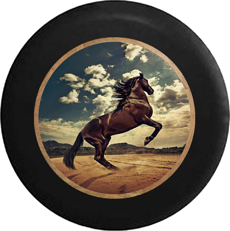 Black Horse in the Wind Bareback Stallion Jeep Camper Spare Tire Cover BLACK- - R326
