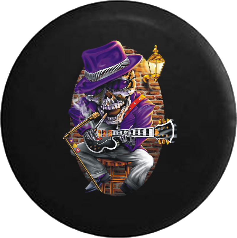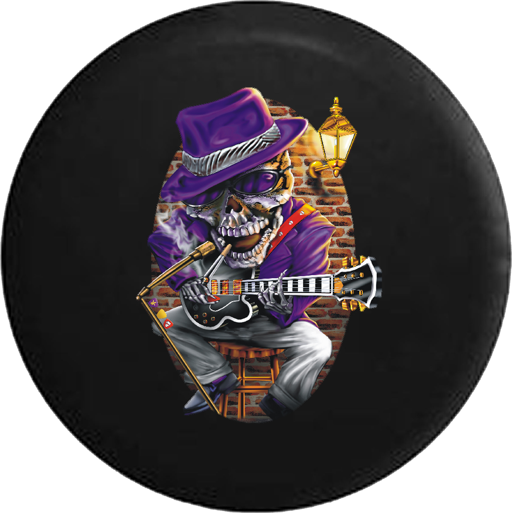 Blues Skeleton Johnny Bones Smokey Club Jam Session RV Camper Spare Tire Cover-BLACK- -V261