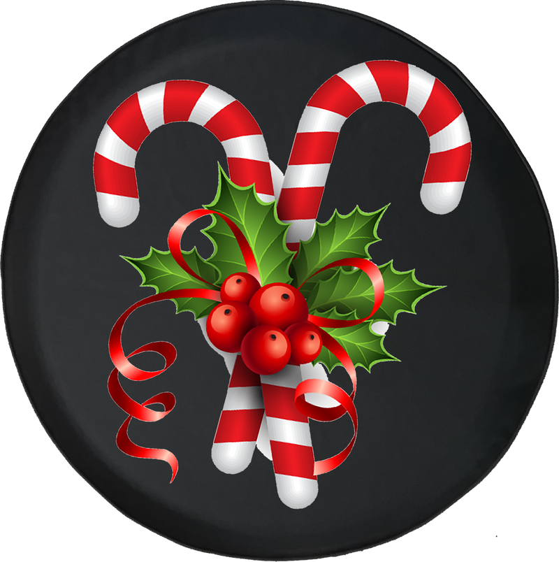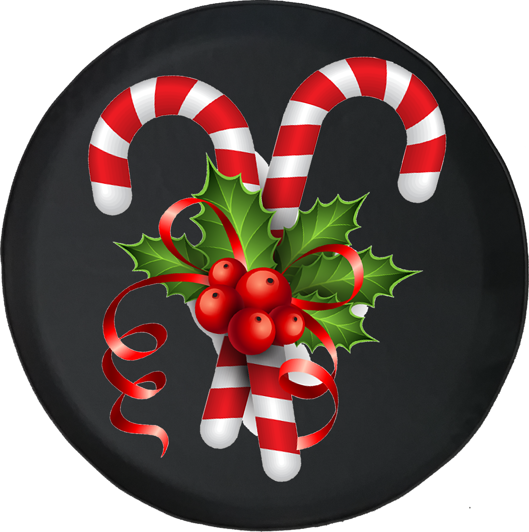 Candy Cane Mistletoe Red Bow Holiday Spirit Festive Snow Winter Jeep Camper Spare Tire Cover - MLW119