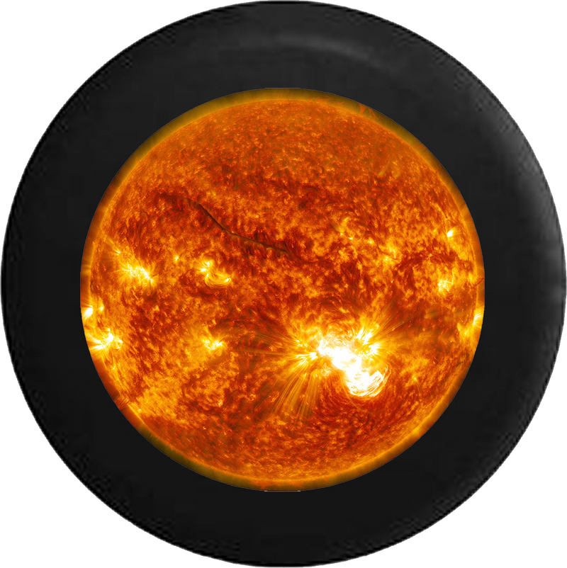 Close up of the Sun with Solar Flares Jeep Camper Spare Tire Cover BLACK- - R172