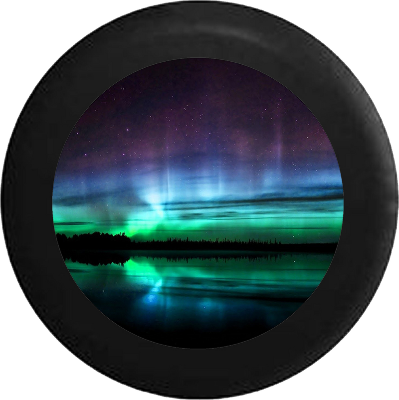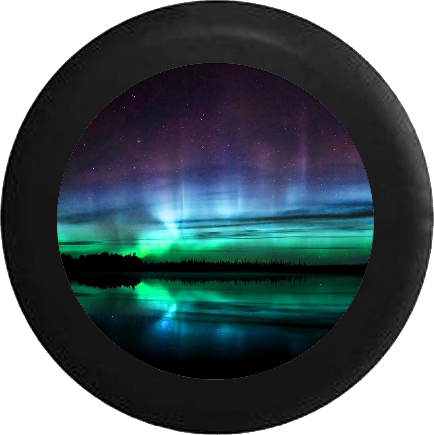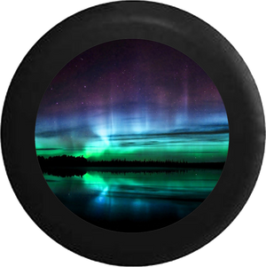 Colorful Night Sky Reflection in Lake RV Camper Spare Tire Cover-BLACK-