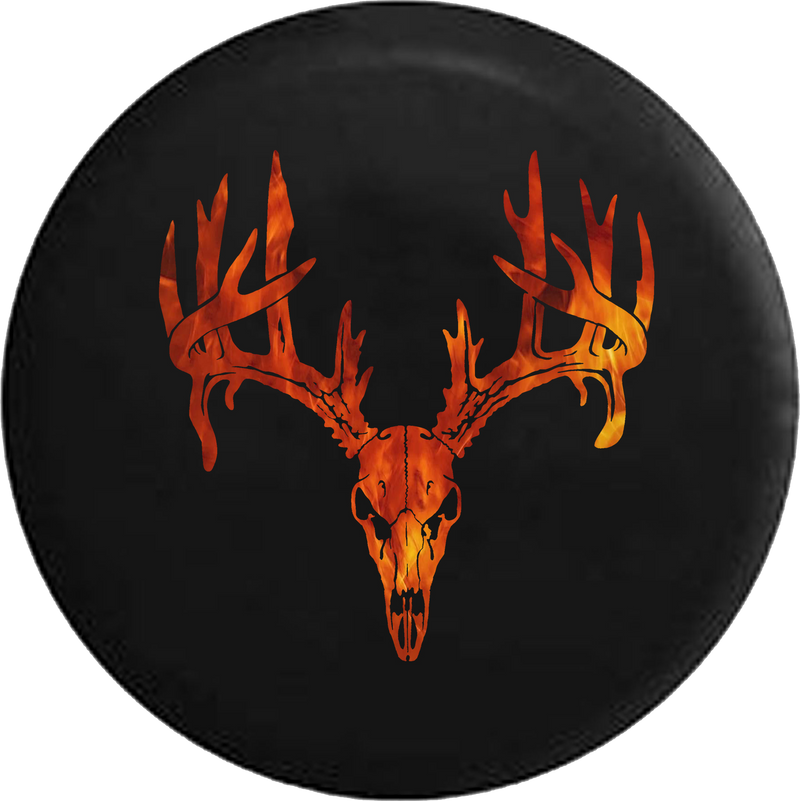 Deer Antlers Skull Fire Flames Hunting Jeep Camper Spare Tire Cover Custom Size - V660