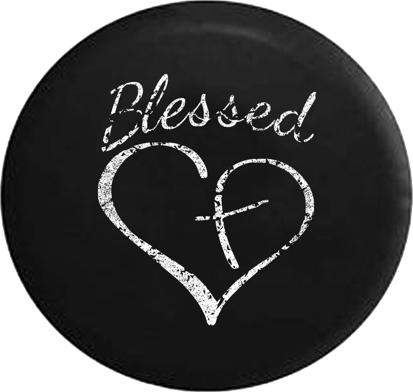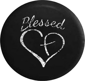 Distressed - Blessed Heart with Cross Jeep Camper Spare Tire Cover U145 Custom Size