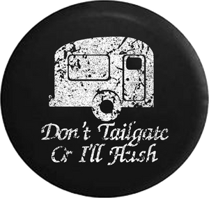 Distressed - Don't Tailgate or I'll Flush Travel Camper RV Trailer Jeep Camper Spare Tire Cover T136 Custom Size