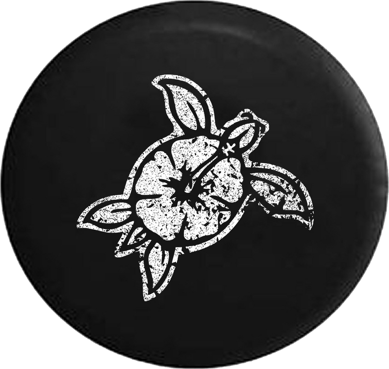 Distressed - Hawaiian Sea Turtle Island Flower Ocean Life Jeep Camper Spare Tire Cover U110 Custom Size