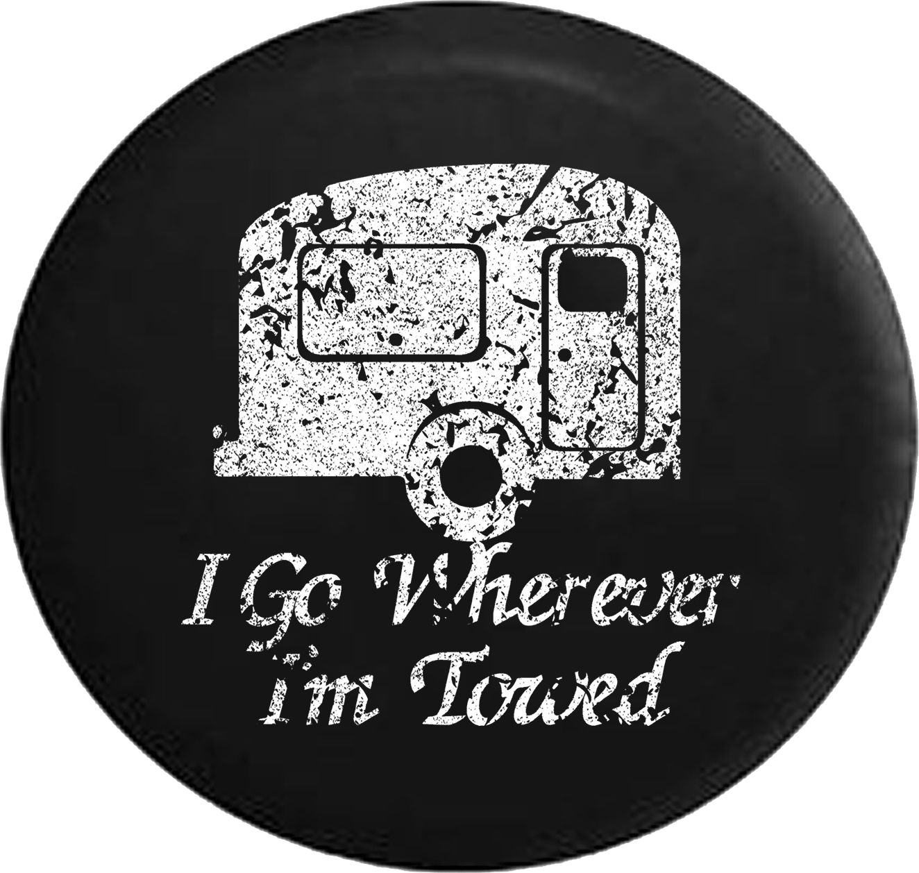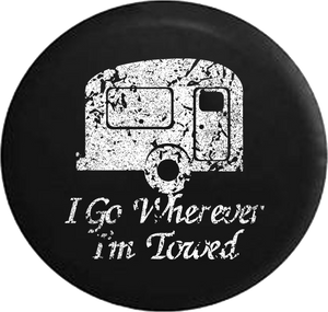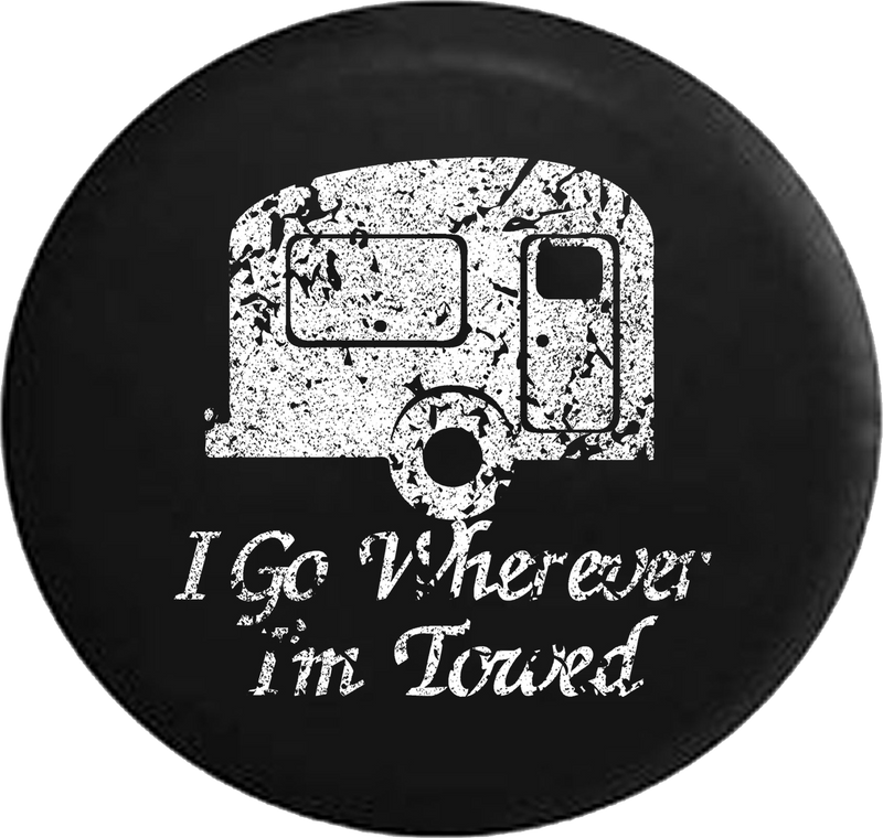 Distressed - I Go Wherever I'm Towed Travel Camper Jeep Camper Spare Tire Cover T135 Custom Size