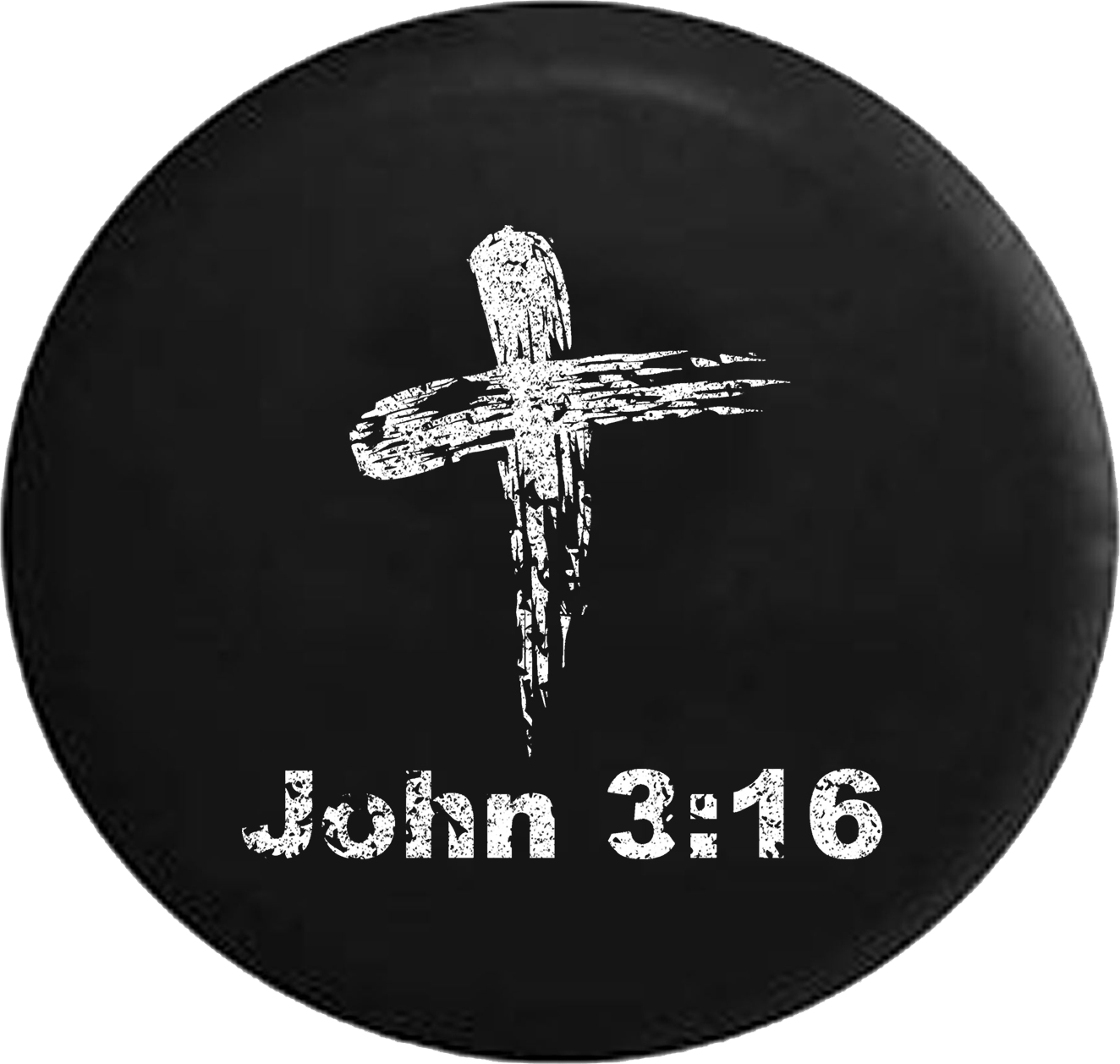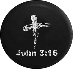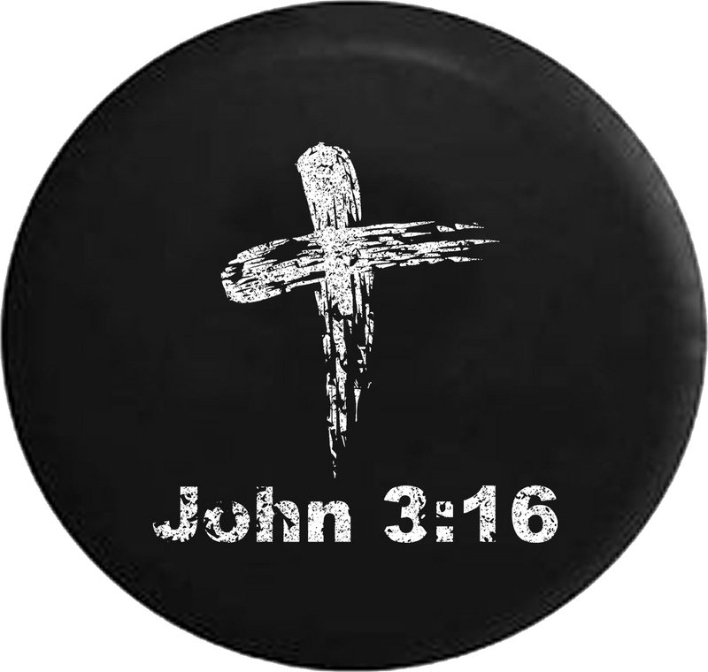 Distressed - John 3:16 Bible Verse God Cross Jeep Camper Spare Tire Cover U153 Custom Size