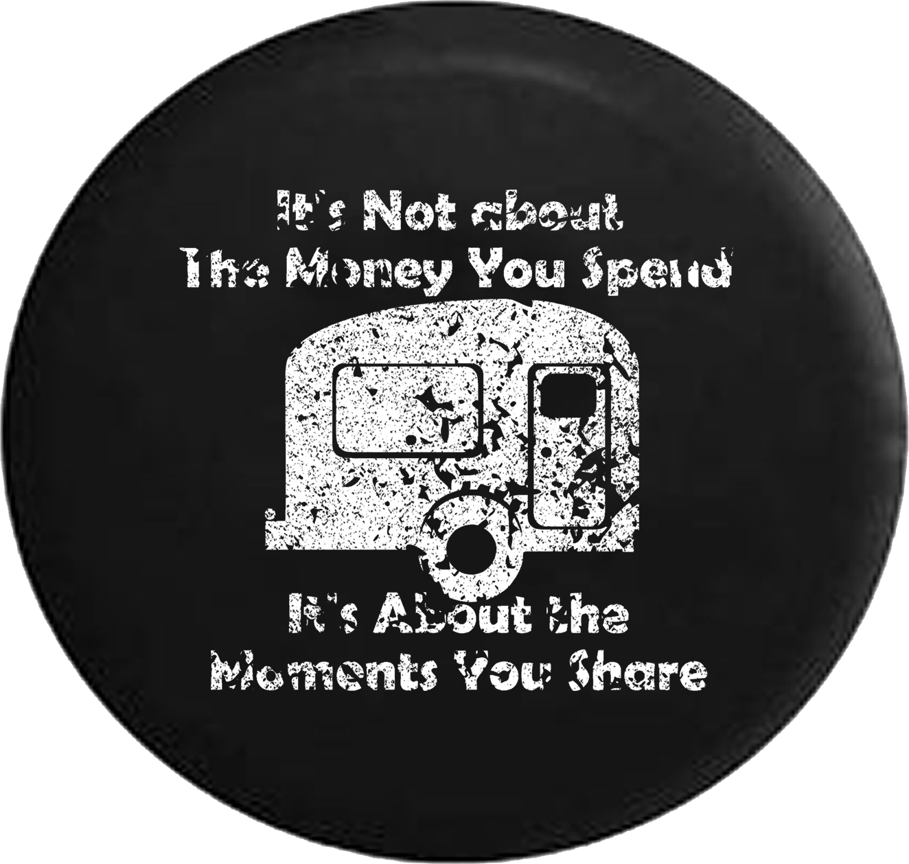 Distressed - Not About the Money You Spend, It's Moments You Share Campfire Jeep Camper Spare Tire Cover J242 Custom Size