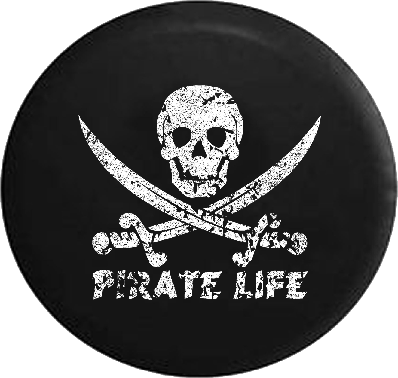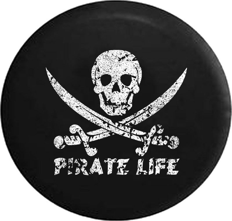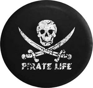 Distressed - Pirate Life Skull & Swords Saltwater Edition Jeep Camper Spare Tire Cover S210 Custom Size