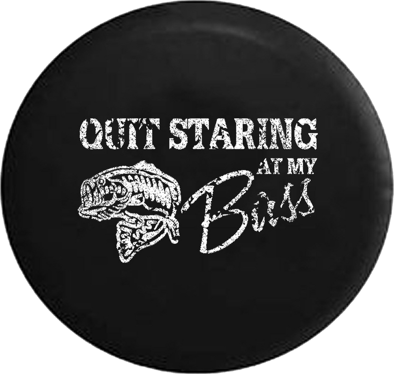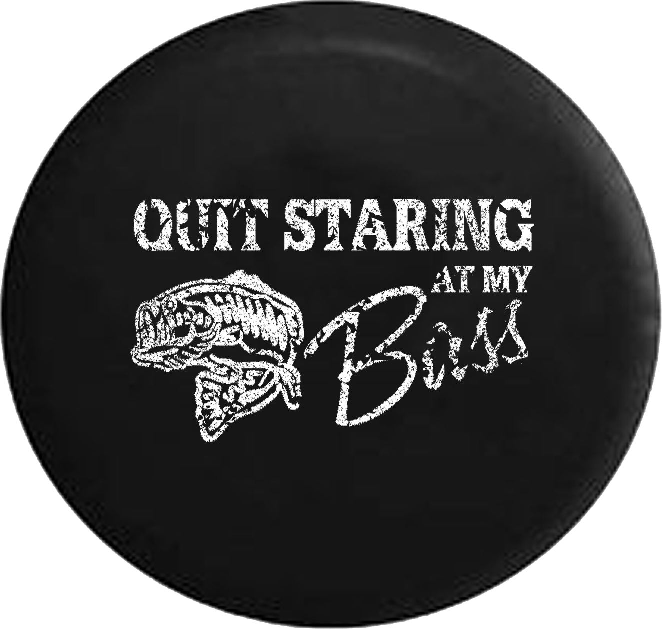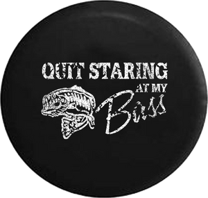 Distressed - Quit Staring at My Bass Fishing Jeep Camper Spare Tire Cover F245 Custom Size