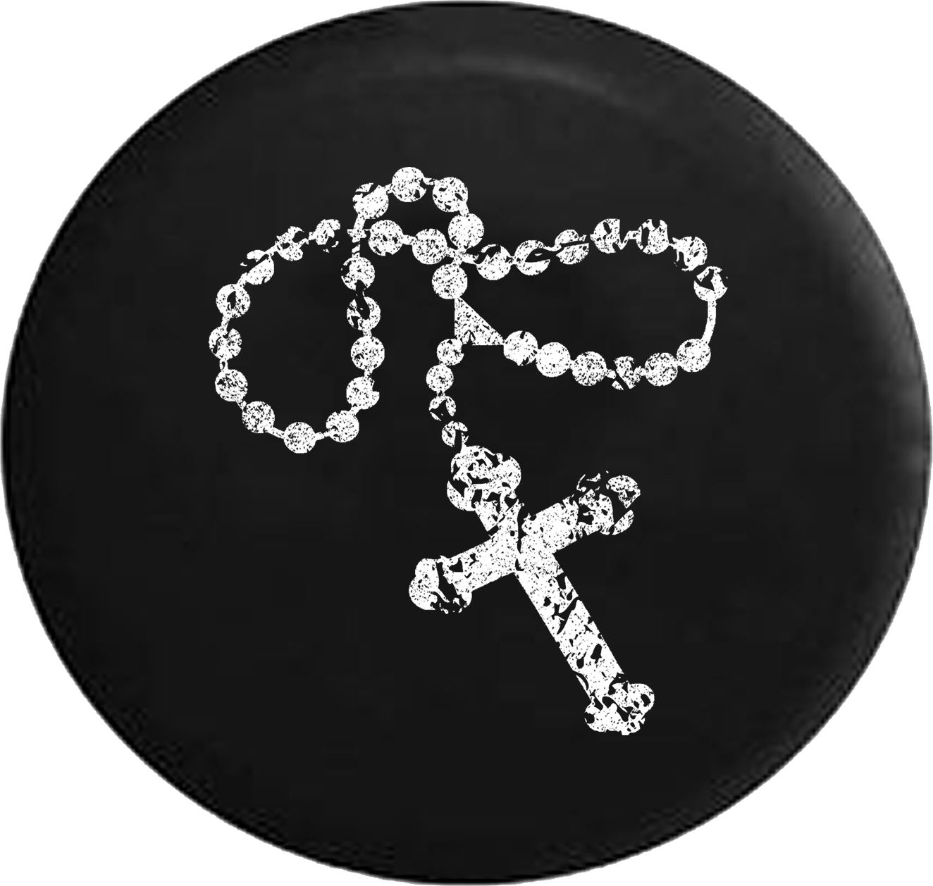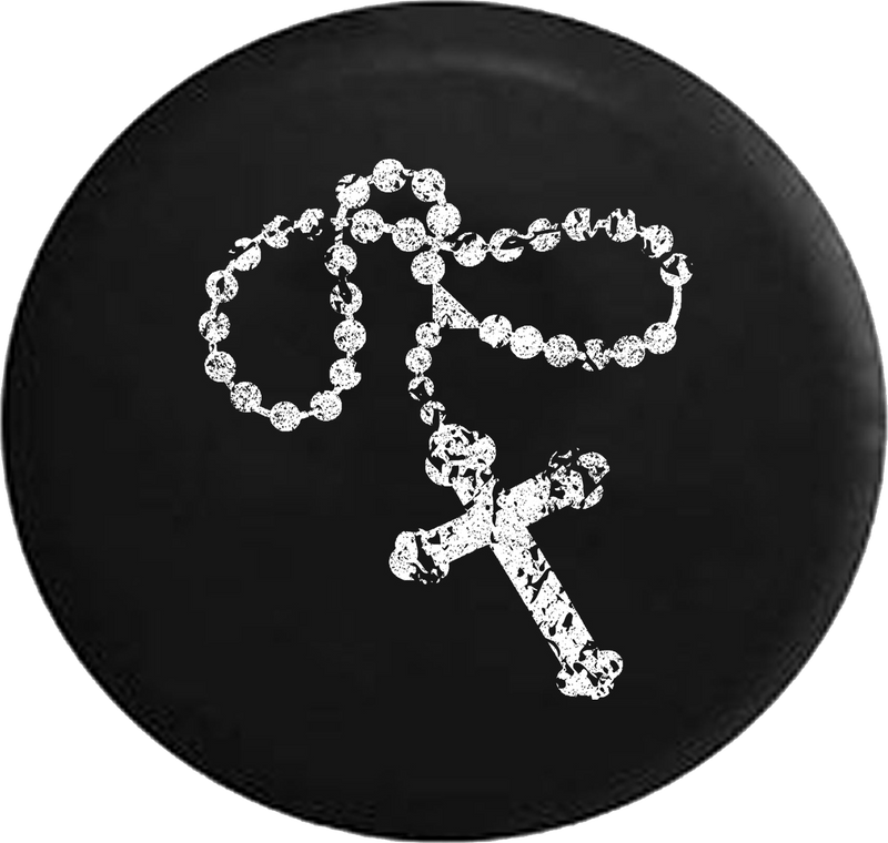 Distressed - Rosary Beads Cross Christian Prayer God Jeep Camper Spare Tire Cover U150 Custom Size