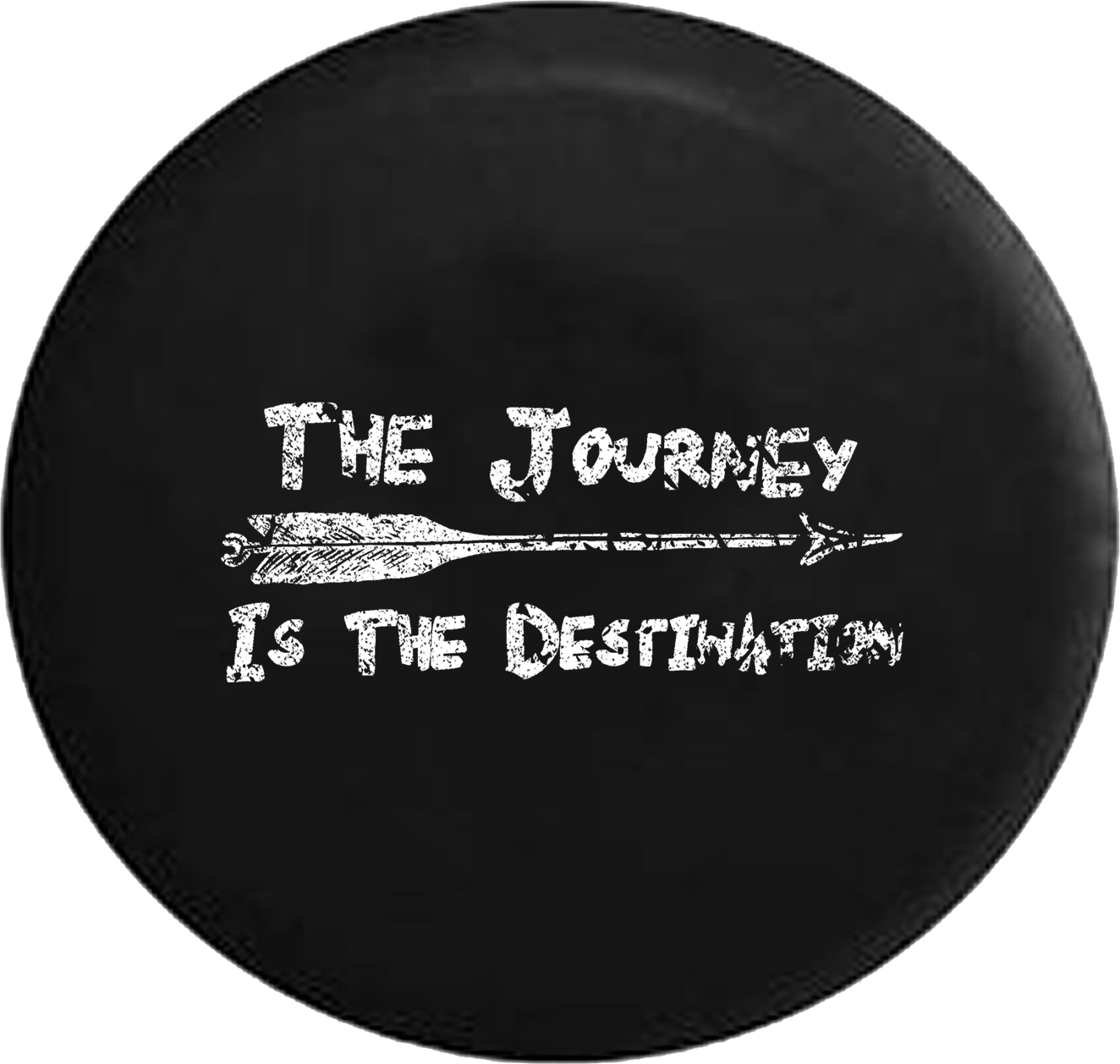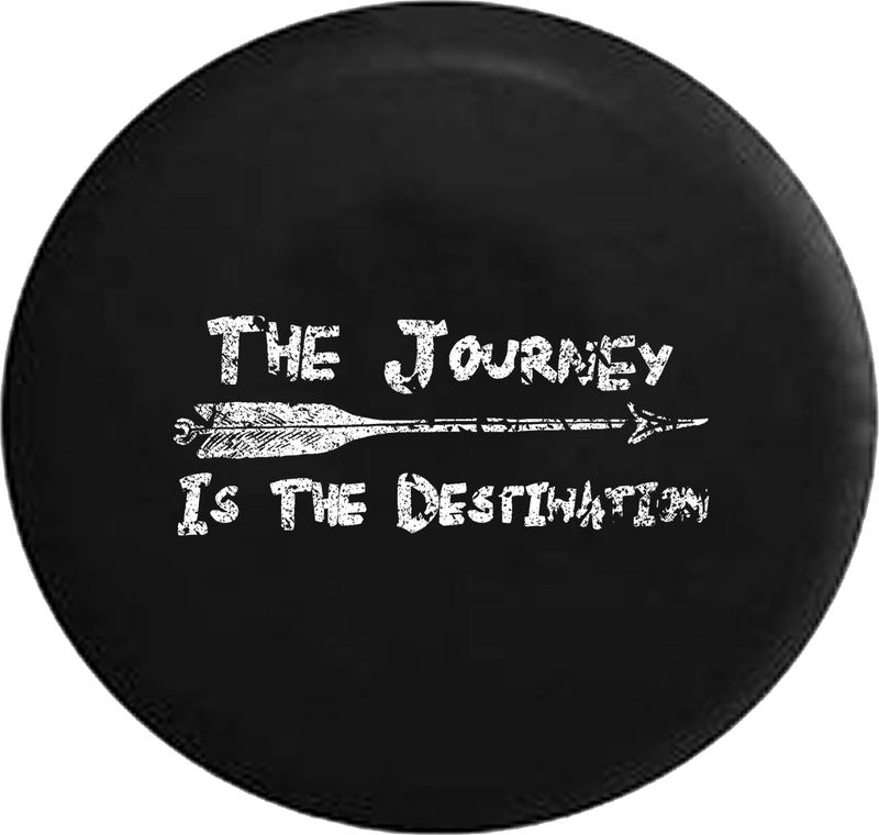 Distressed - The Journey is the Destination Arrow Travel Adventure Quote Jeep Camper Spare Tire Cover J290 Custom Size