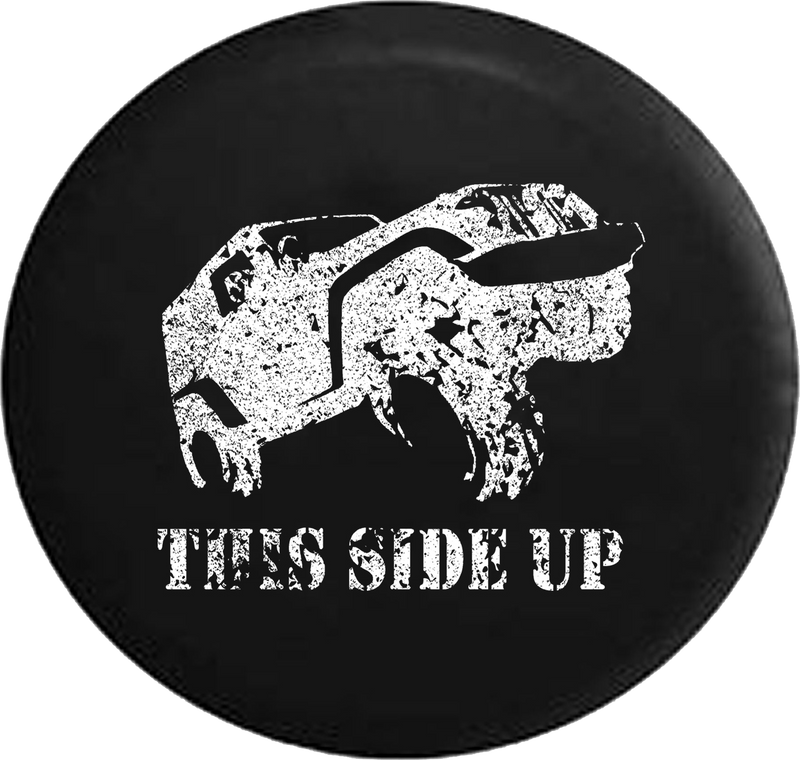 Distressed - This Side Up Wrangler Off Road Jeep Camper Spare Tire Cover U122 Custom Size