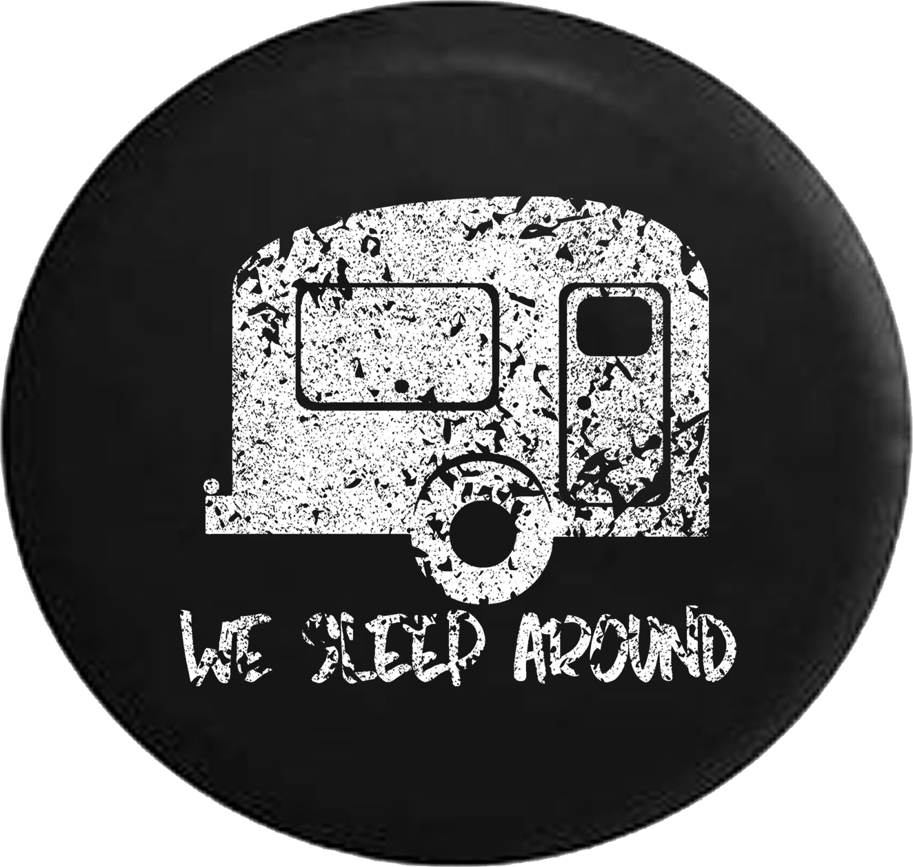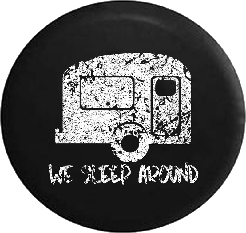 Distressed - We Sleep Around Travel Camper Jeep Camper Spare Tire Cover H434 Custom Size