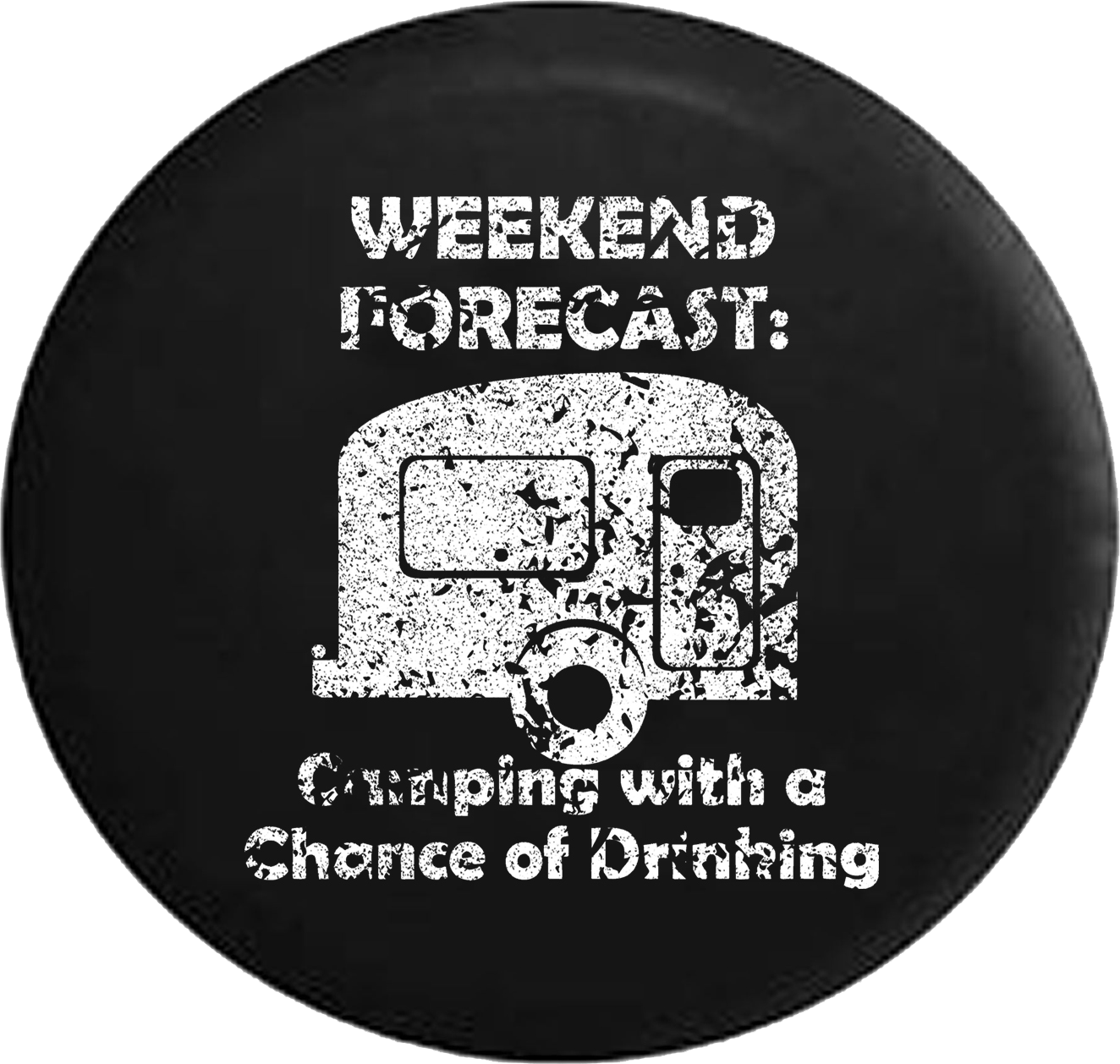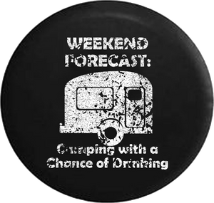 Distressed - Weekend Forecast Camping with a Chance of Drinking Camper Jeep Camper Spare Tire Cover J246 Custom Size