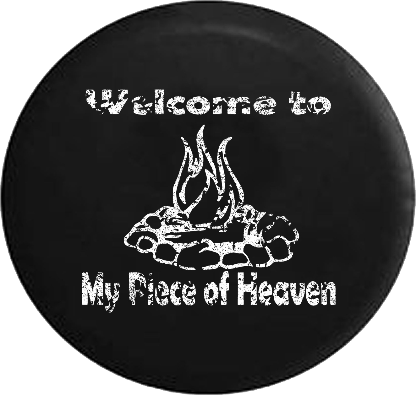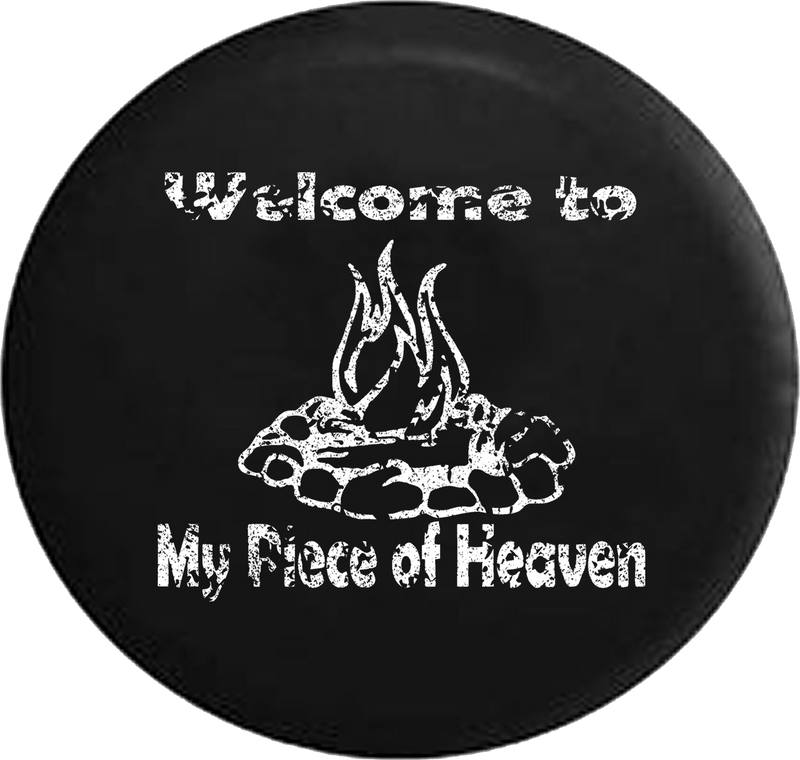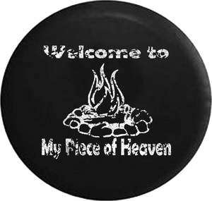Distressed - Welcome to My Piece of Heaven Campfire Camping Travel Jeep Camper Spare Tire Cover J272 Custom Size
