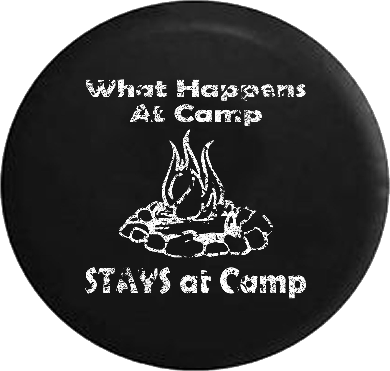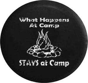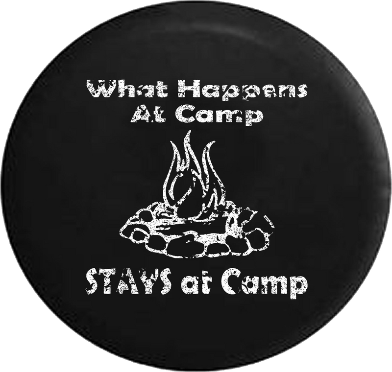 Distressed - What Happens at Camp Stays at Camp Campfire Travel Vacation Jeep Camper Spare Tire Cover J281 Custom Size