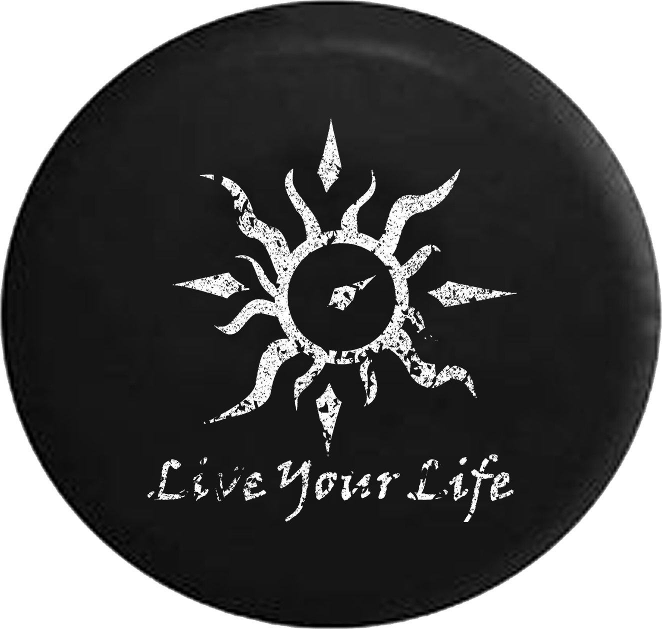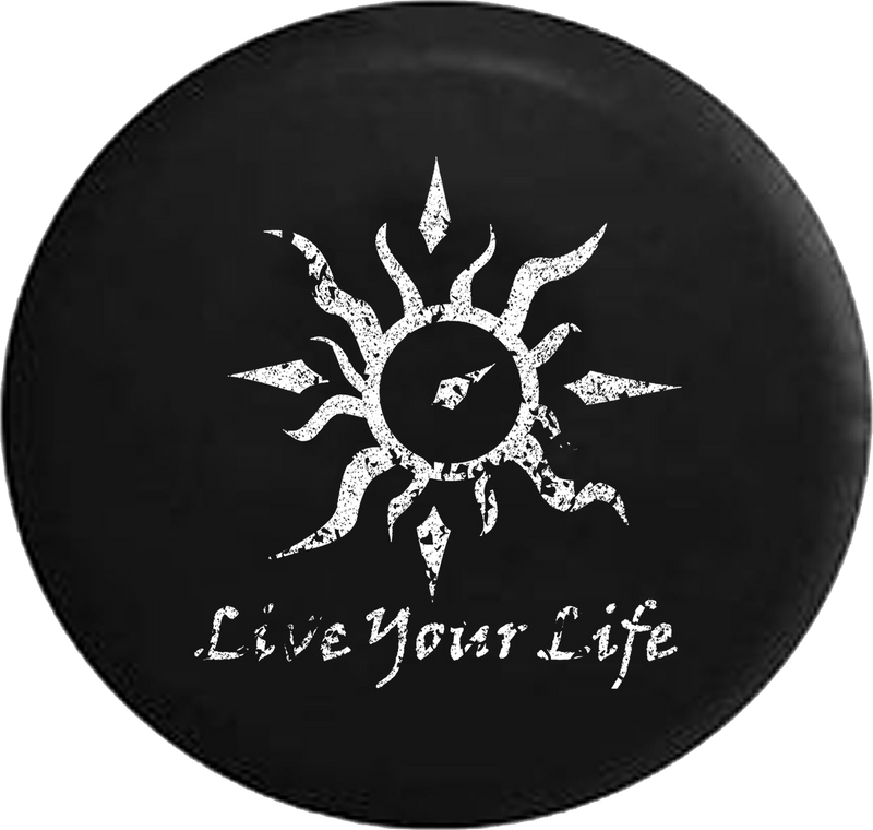 Distressed - Live Your Life Sun Compass Jeep Camper Spare Tire Cover A297