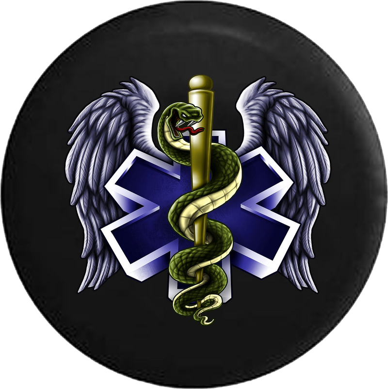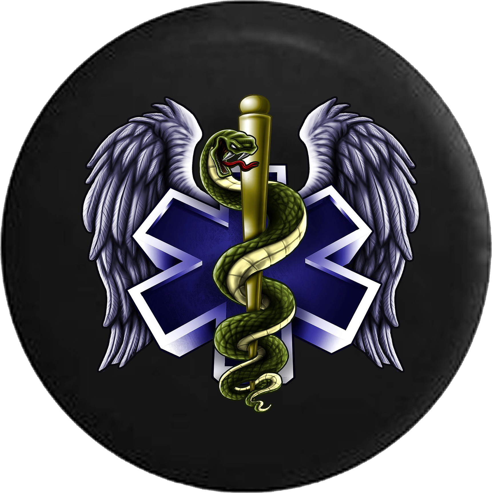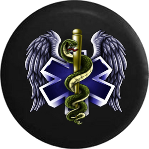 Emergency Medical Tech Angel Wings Logo RV Camper Spare Tire Cover-BLACK- -V105