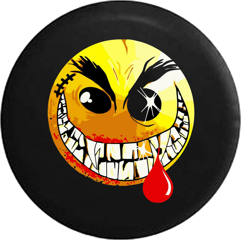 Evil Crazy Smiley Face Dripping Blood Jeep Camper Spare Tire Cover - P112