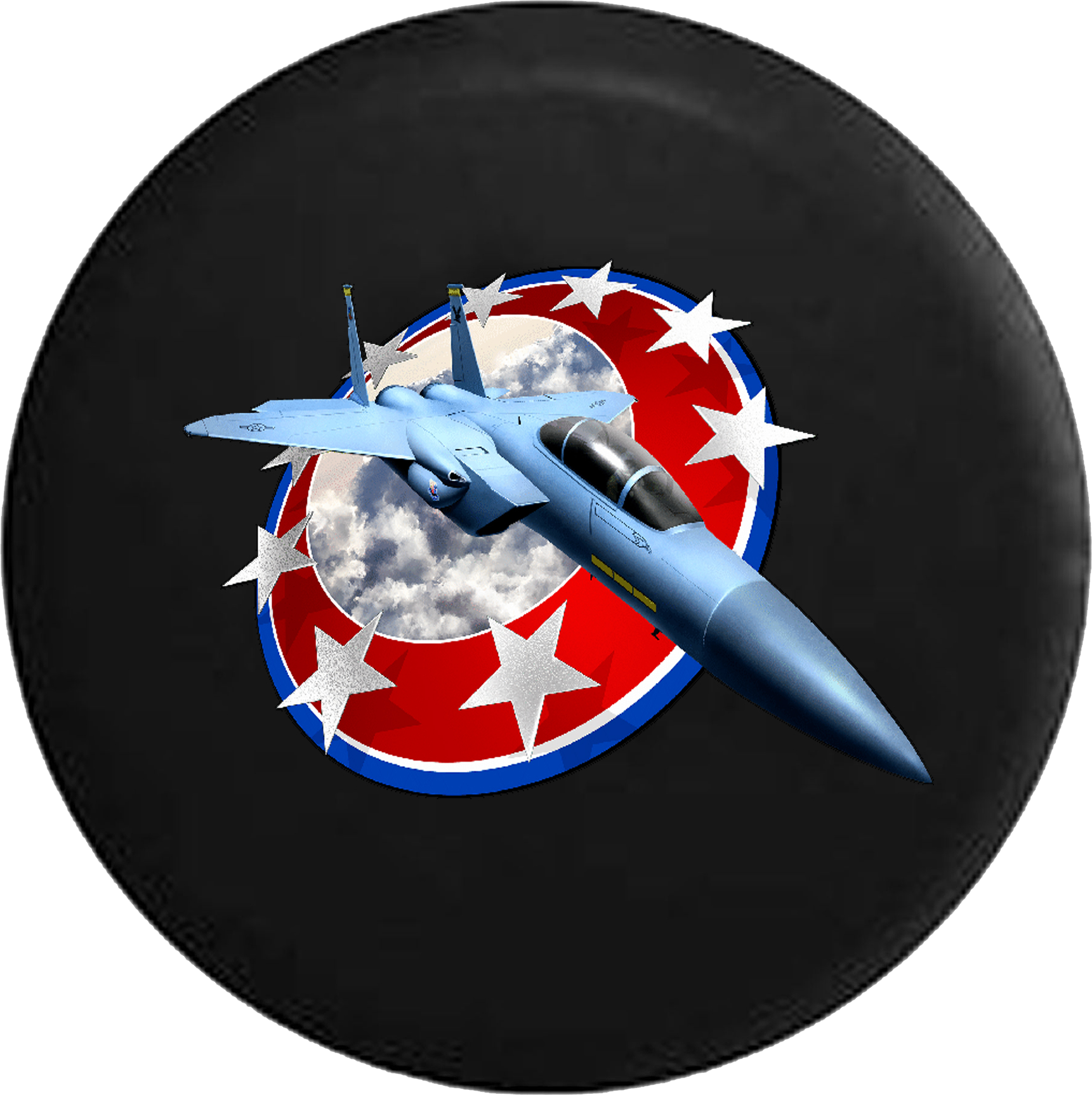 Fighter Jet Through Red White and Blue America Shield RV Camper Spare Tire Cover-BLACK- -V108