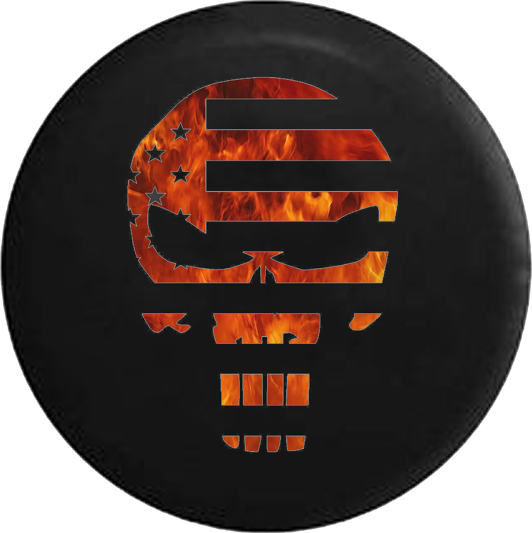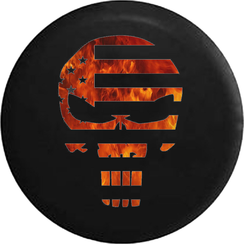 Flaming Skull - American Flag Military Patriot Jeep Camper Spare Tire Cover Custom Size - V589