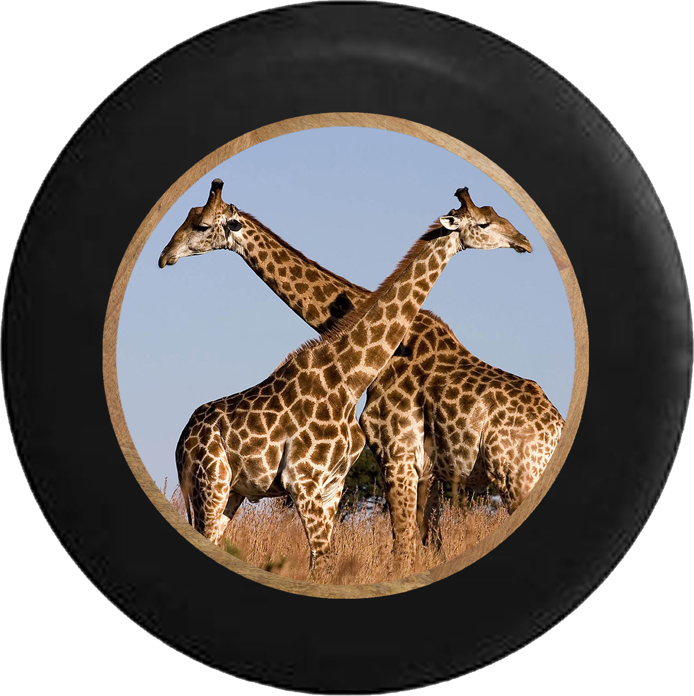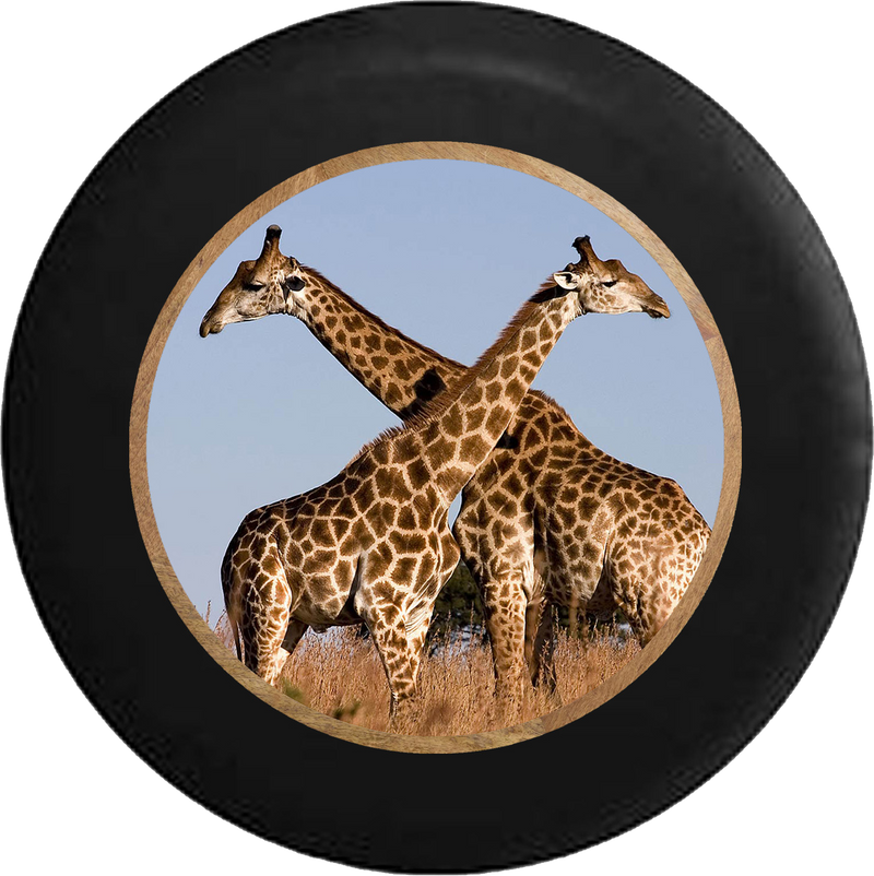 Giraffe Couple in the African Sahara Jeep Camper Spare Tire Cover BLACK- - R268