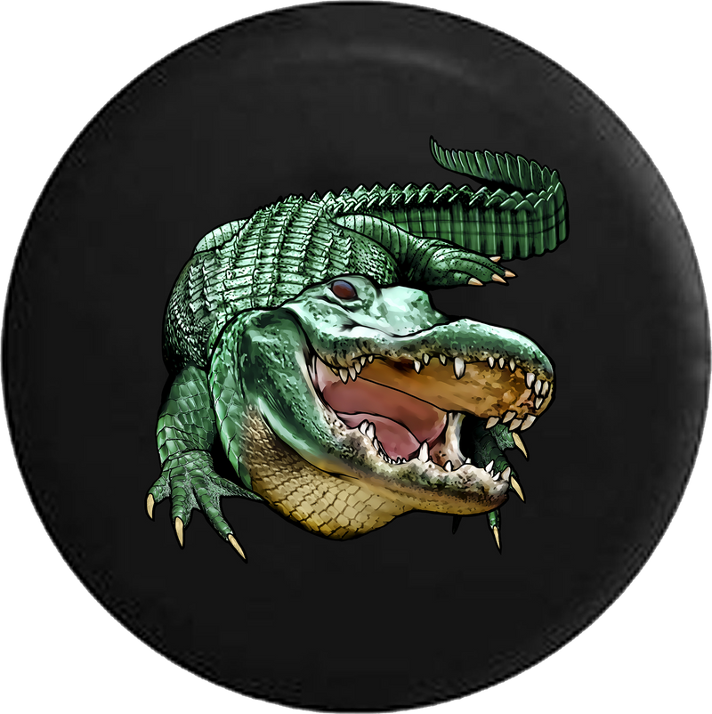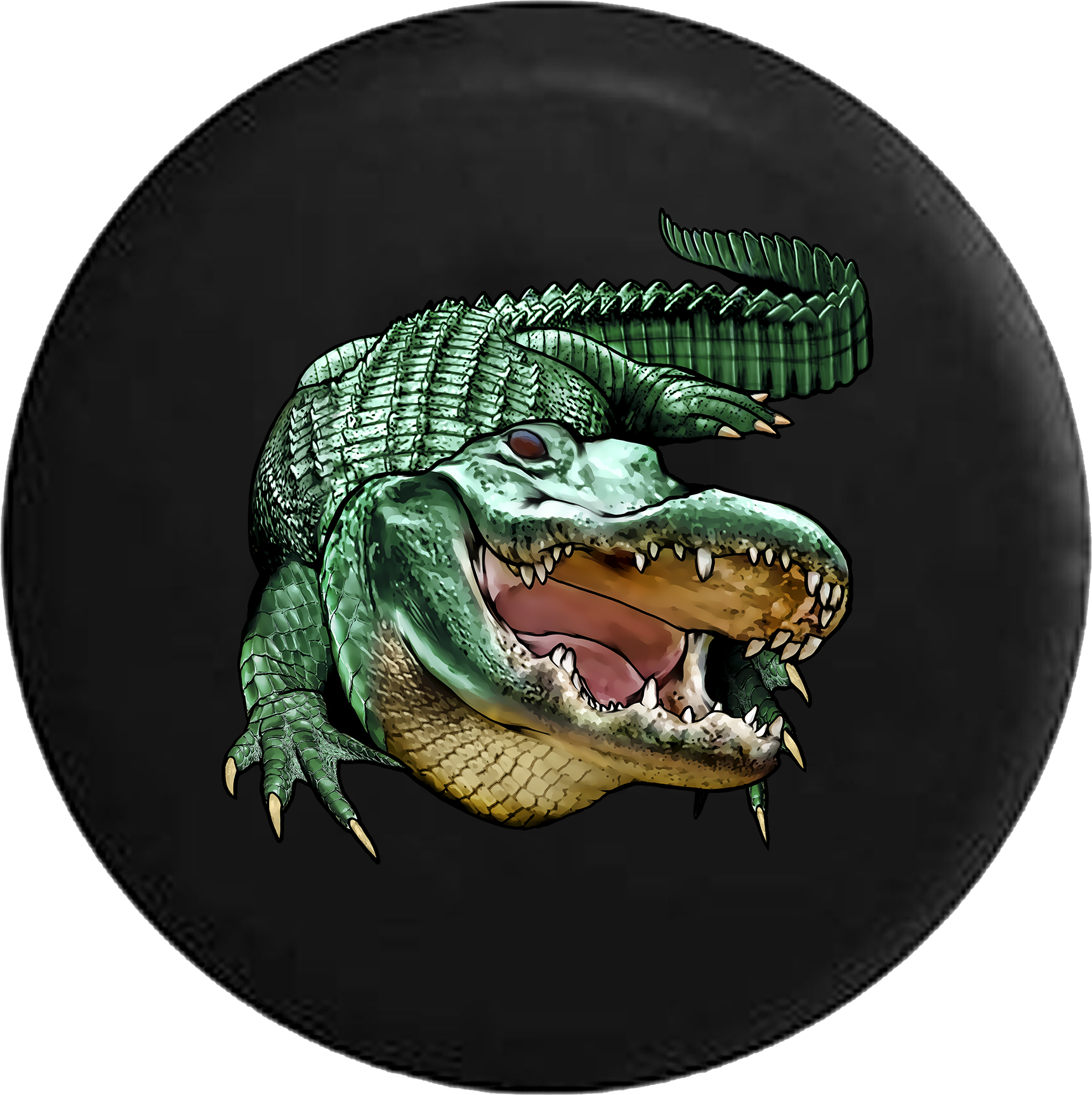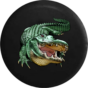 Green Alligator Crocodile Swamp Life RV Camper Spare Tire Cover-BLACK- -V155
