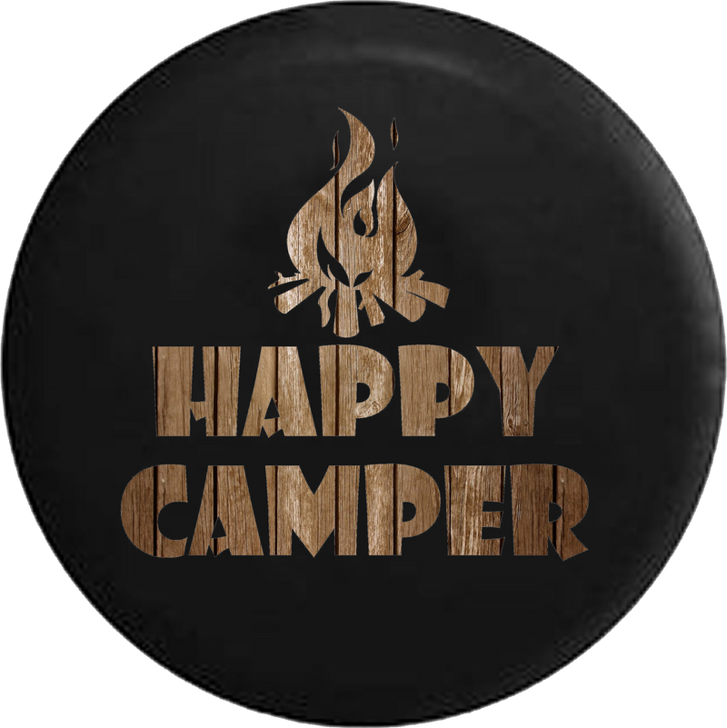 Happy Camper Campfire Distressed Barn Wood Jeep Camper Spare Tire Cover Custom Size - V733