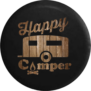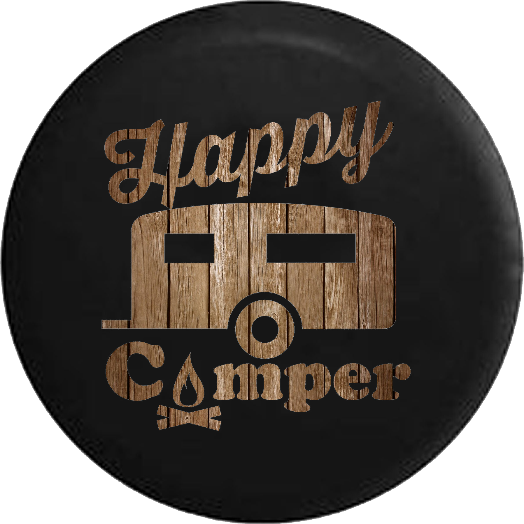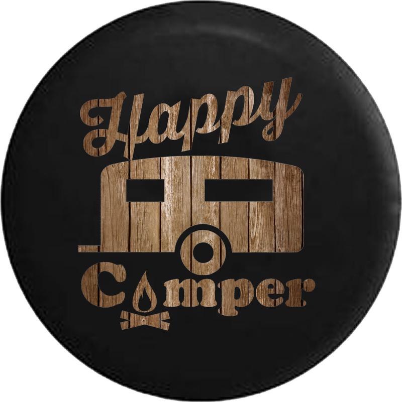 Happy Camper Campfire Distressed Wood Jeep Camper Spare Tire Cover Custom Size - V710