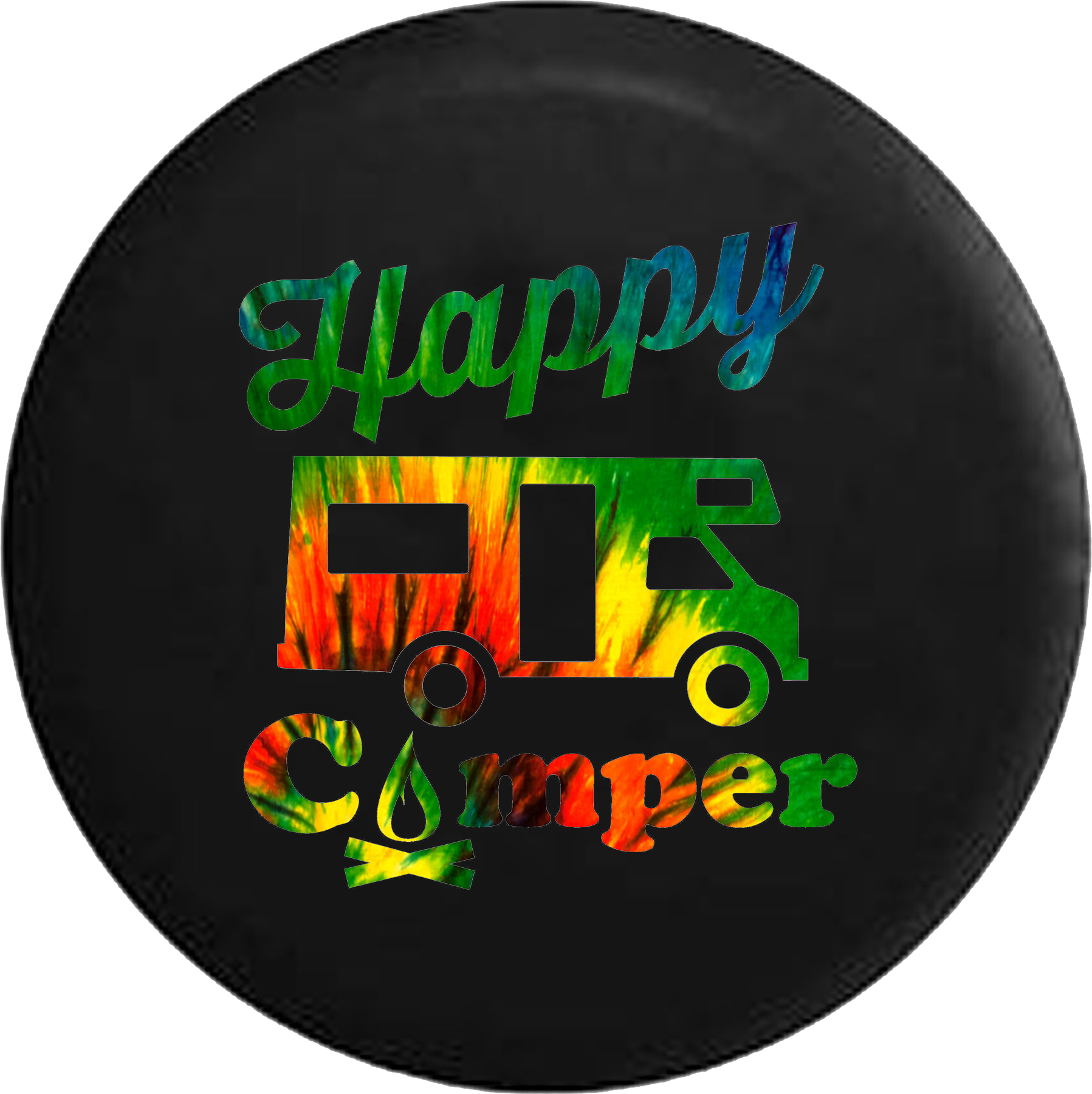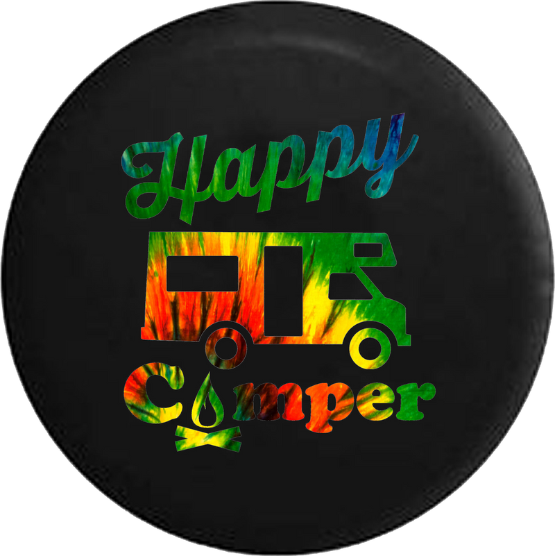 Happy Camper Campfire RV Tie dye Jeep Camper Spare Tire Cover Custom Size - V713